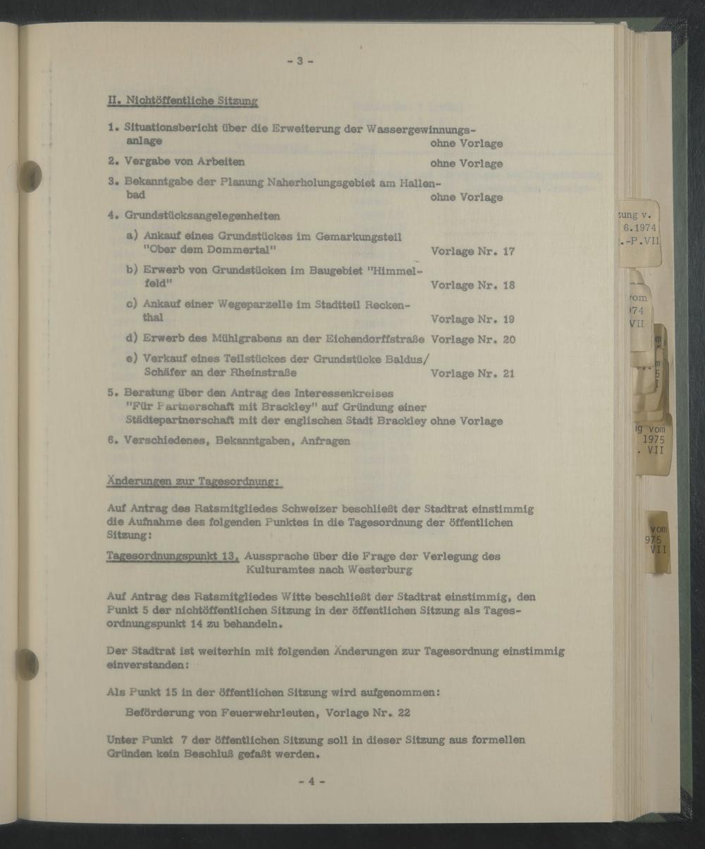 Unter Punkt 7 der öffentlichen Sitzung soll in dieser Sitzung aus formellen Gründen kein Beschluß gefaßt werden.