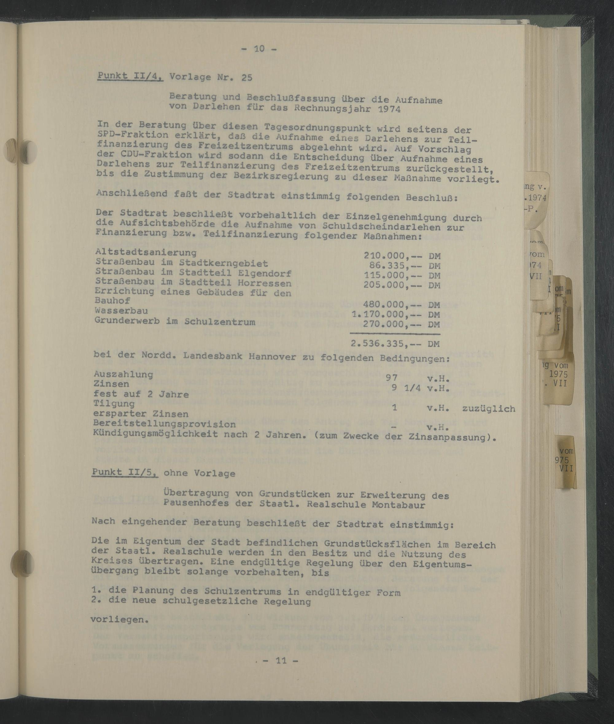 Beratung und Beschlußfassung über die Aufnahme von Darlehen für das Rechnungsjahr 1974