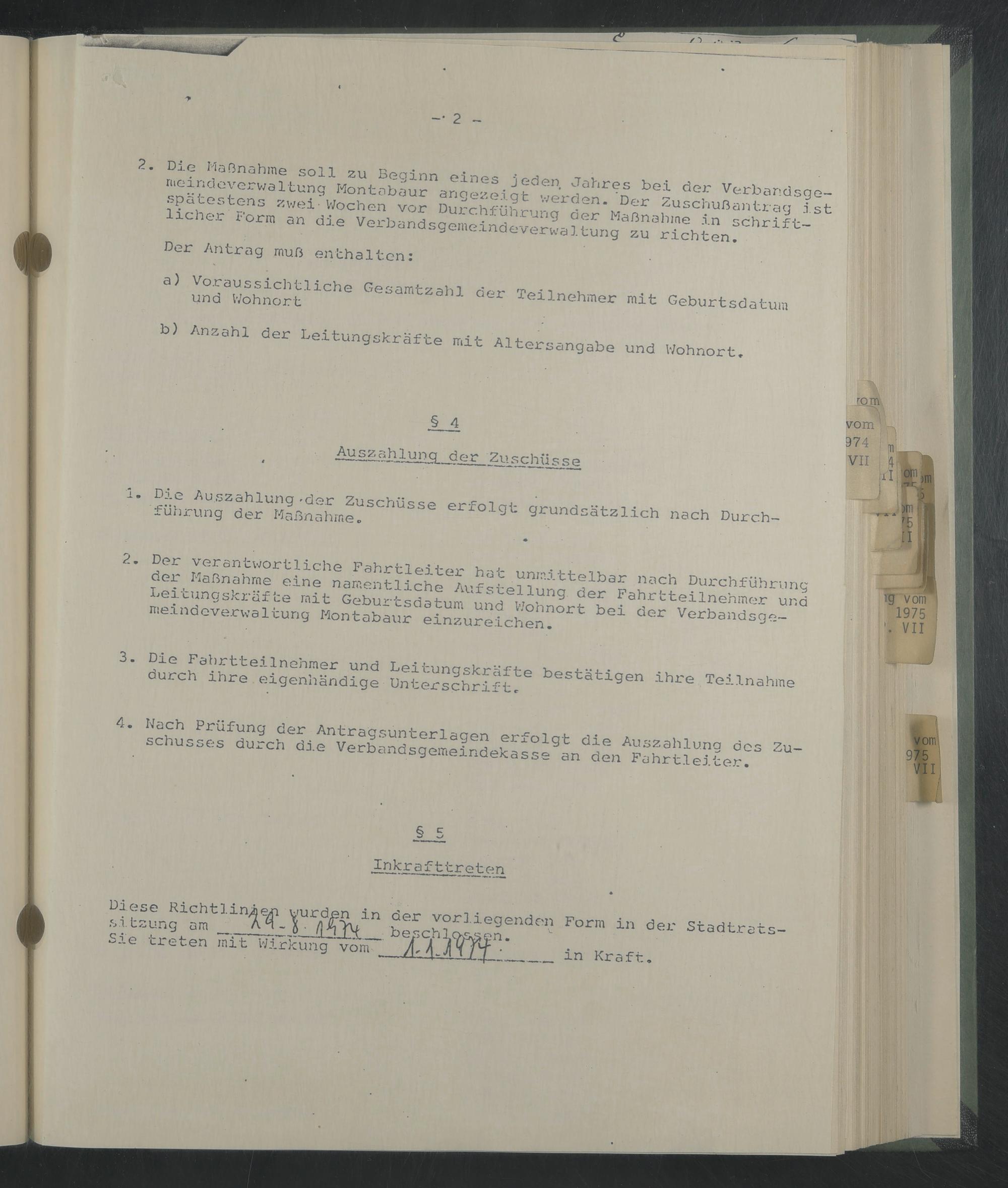 2. Die Maßnahme soll zu Beginn eines jeden Jahres bei der Verbandsgc- meindeverwaltung Montabaur angezeigt werden. Der Zuschußantrag ist spätestens zwei Wochen vor Durchführung der Maßnahme in schriftlicher Form an die Verbandsgemeindeverwaltung zu richten.