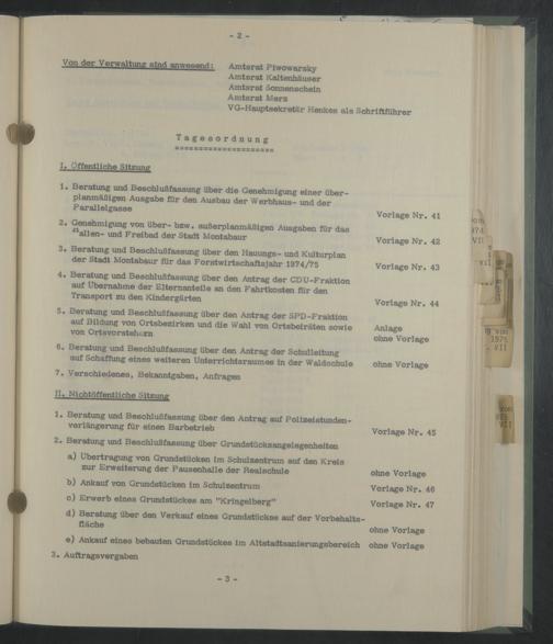 Von der Verwaltung sind anwesend: Amtsrat Piwowarsky