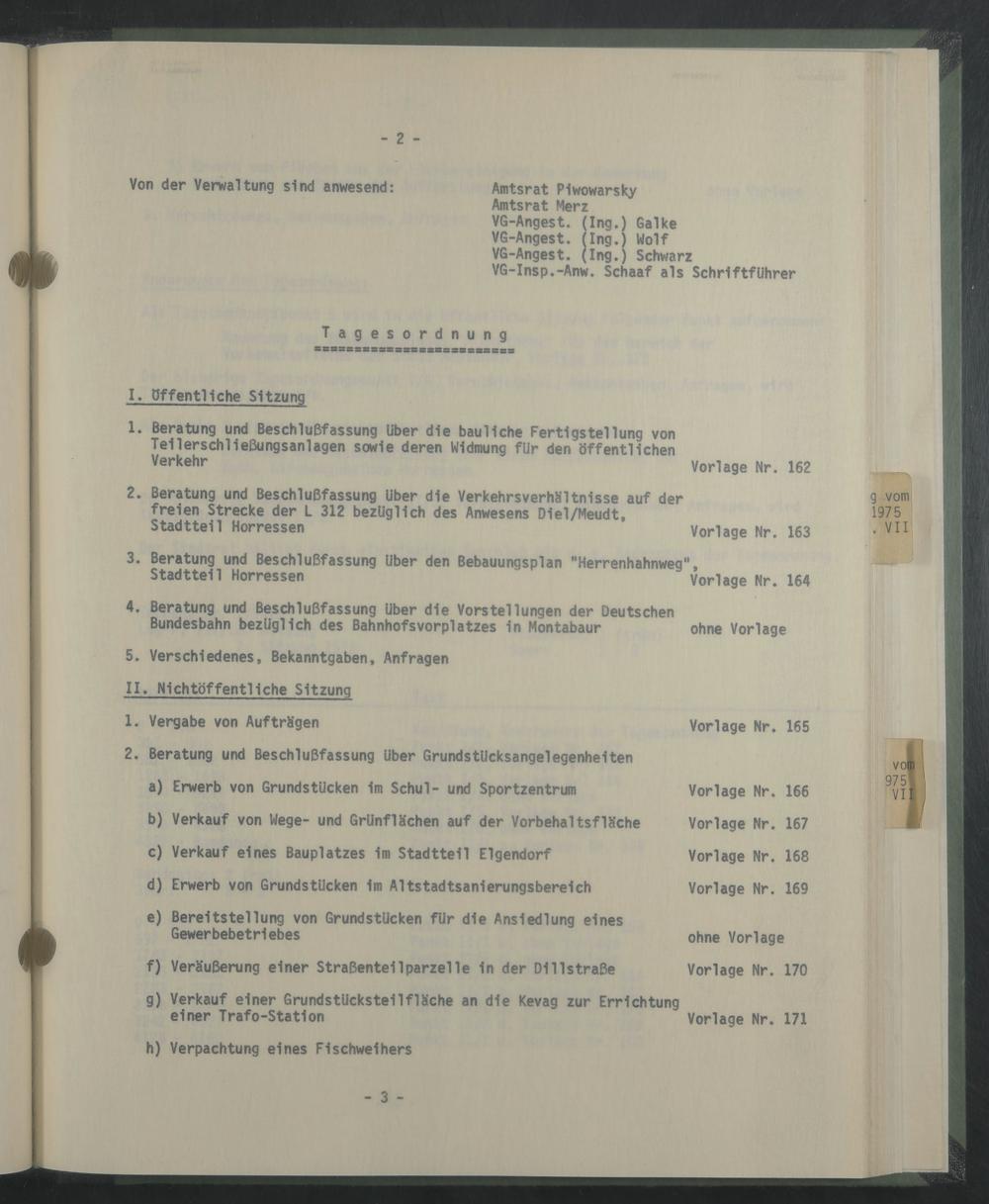 Amtsrat Merz VG-Angest. (Ing.) Galke VG-Angest. (Ing.) Wolf VG-Angest. (Ing.) Schwarz VG-Insp.-Anw. Schaaf als Schriftführer