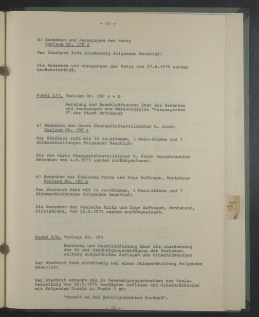 b) Bedenken der Eheleute Fritz und Inge Eufinger, Montabaur Vorlage Nr. 180 b