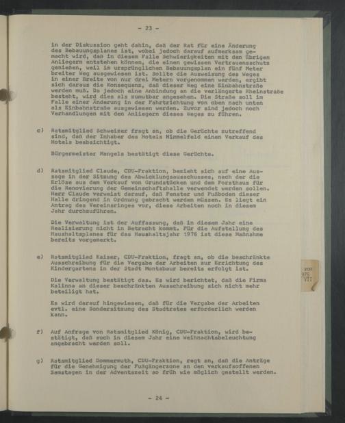 c) Ratsmitglied Schweizer fragt an, ob die Gerüchte zutreffend sind, daß der Inhaber des Hotels Himmelfeld einen Verkauf des Hotels beabsichtigt.