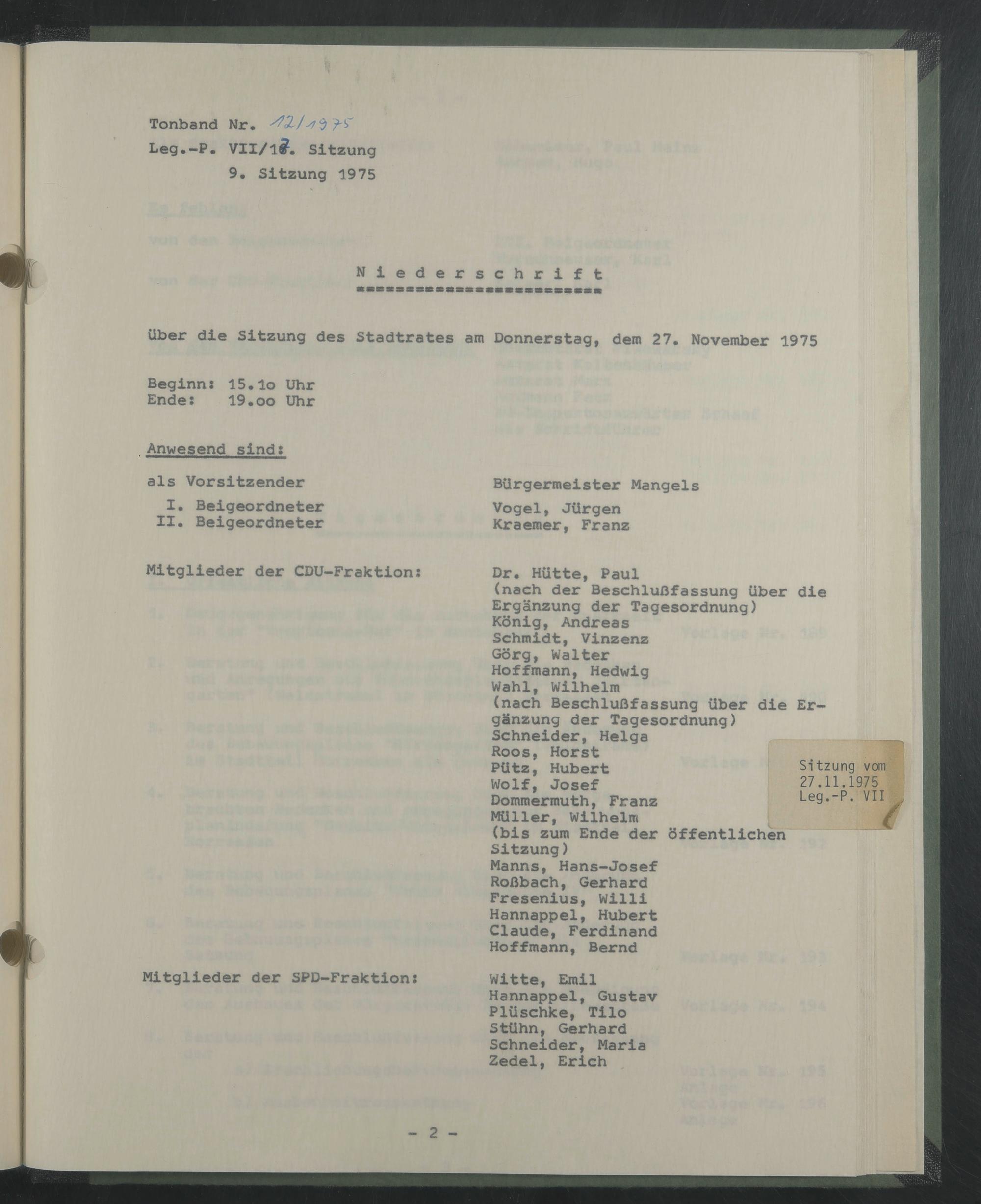 Sitzung vom 27 . 11.1975