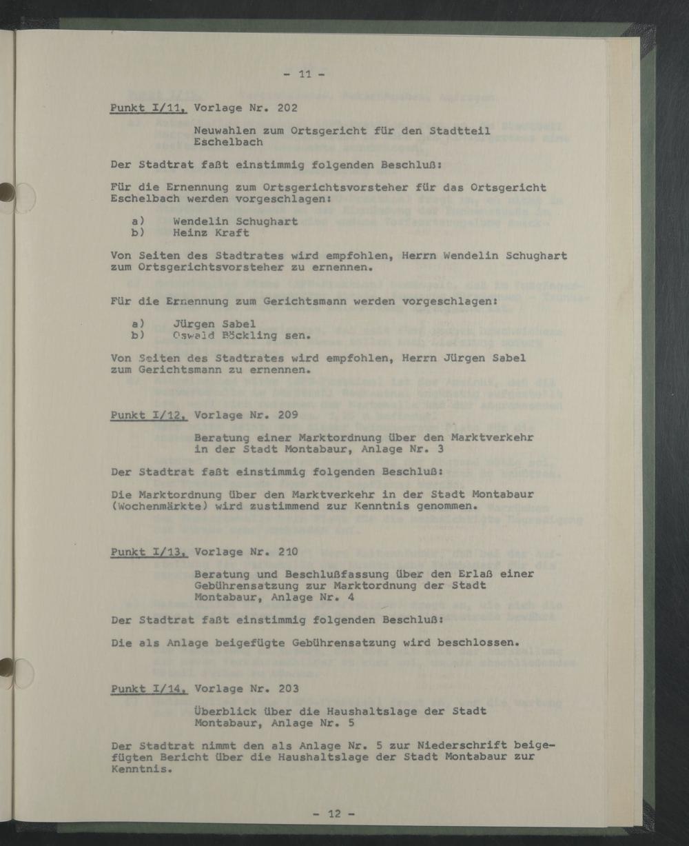 Die Marktordnung über den Marktverkehr in der Stadt Montabaur (Wochenmärkte) wird zustimmend zur Kenntnis genommen.
