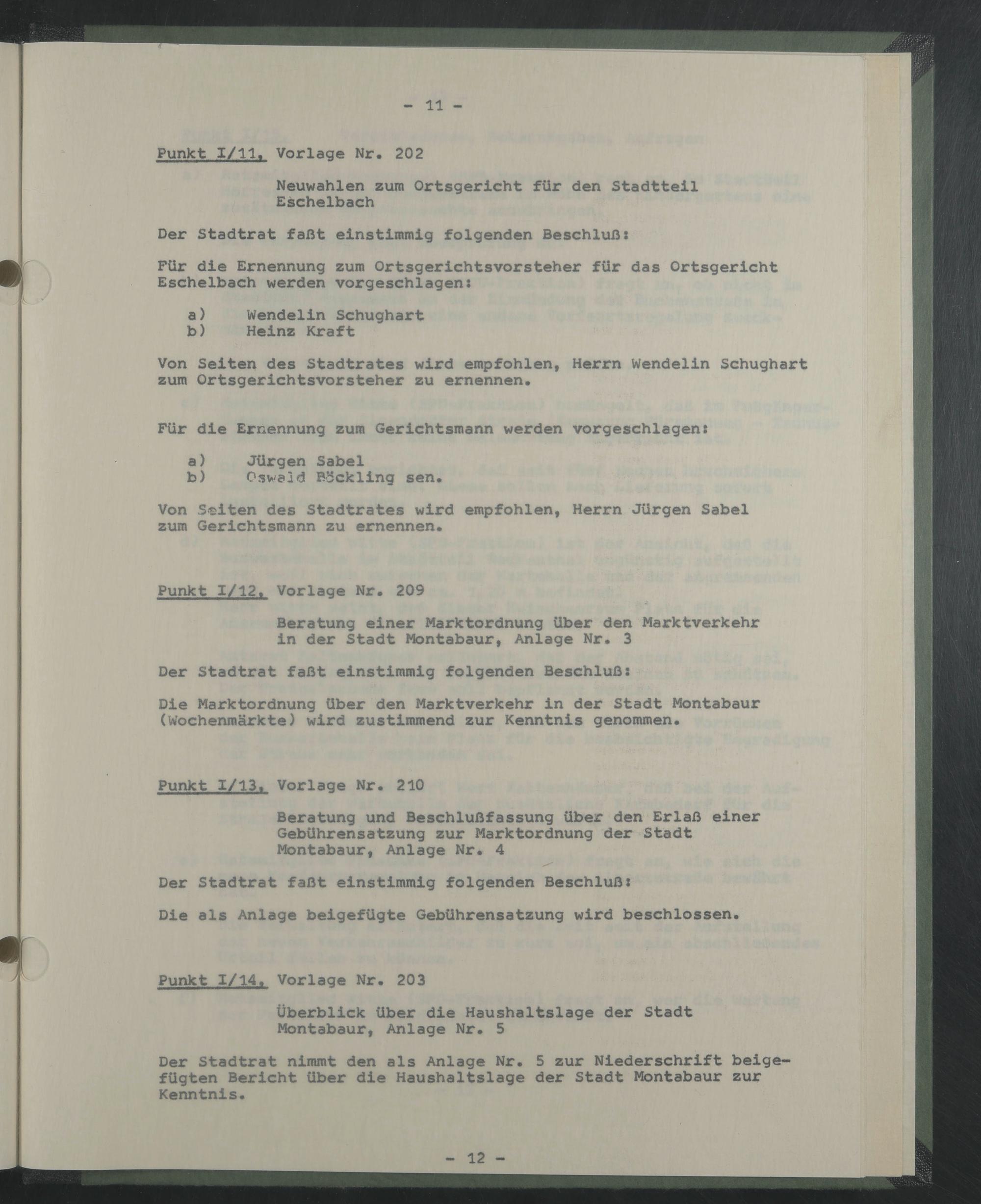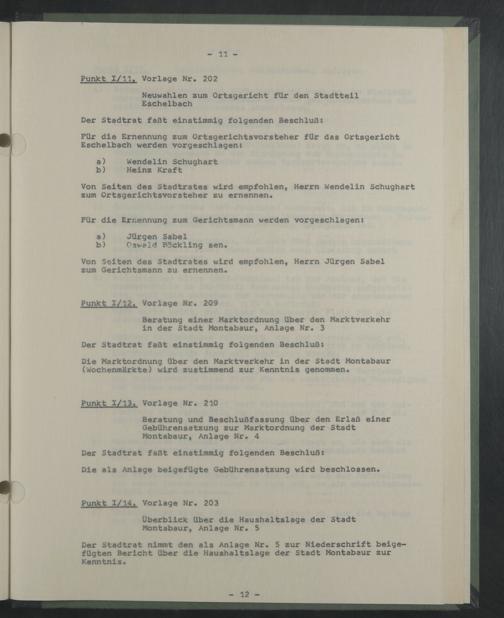 Neuwahlen zum Ortsgericht für den Stadtteil Eschelbach