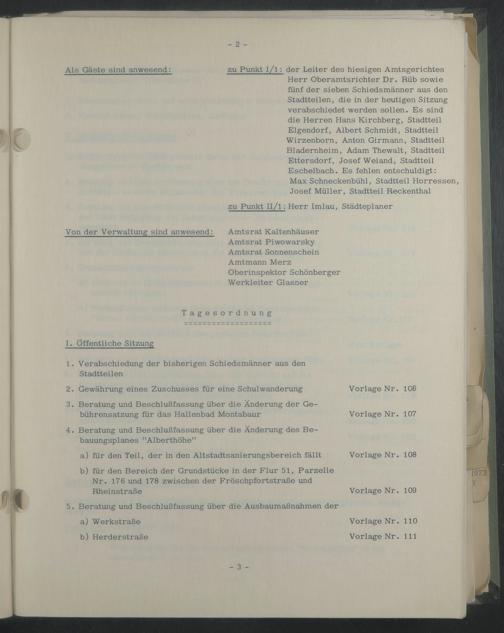Als Gäste sind anwesend: zu Punkt i/l: der Leiter des hiesigen Amtsgerichtes