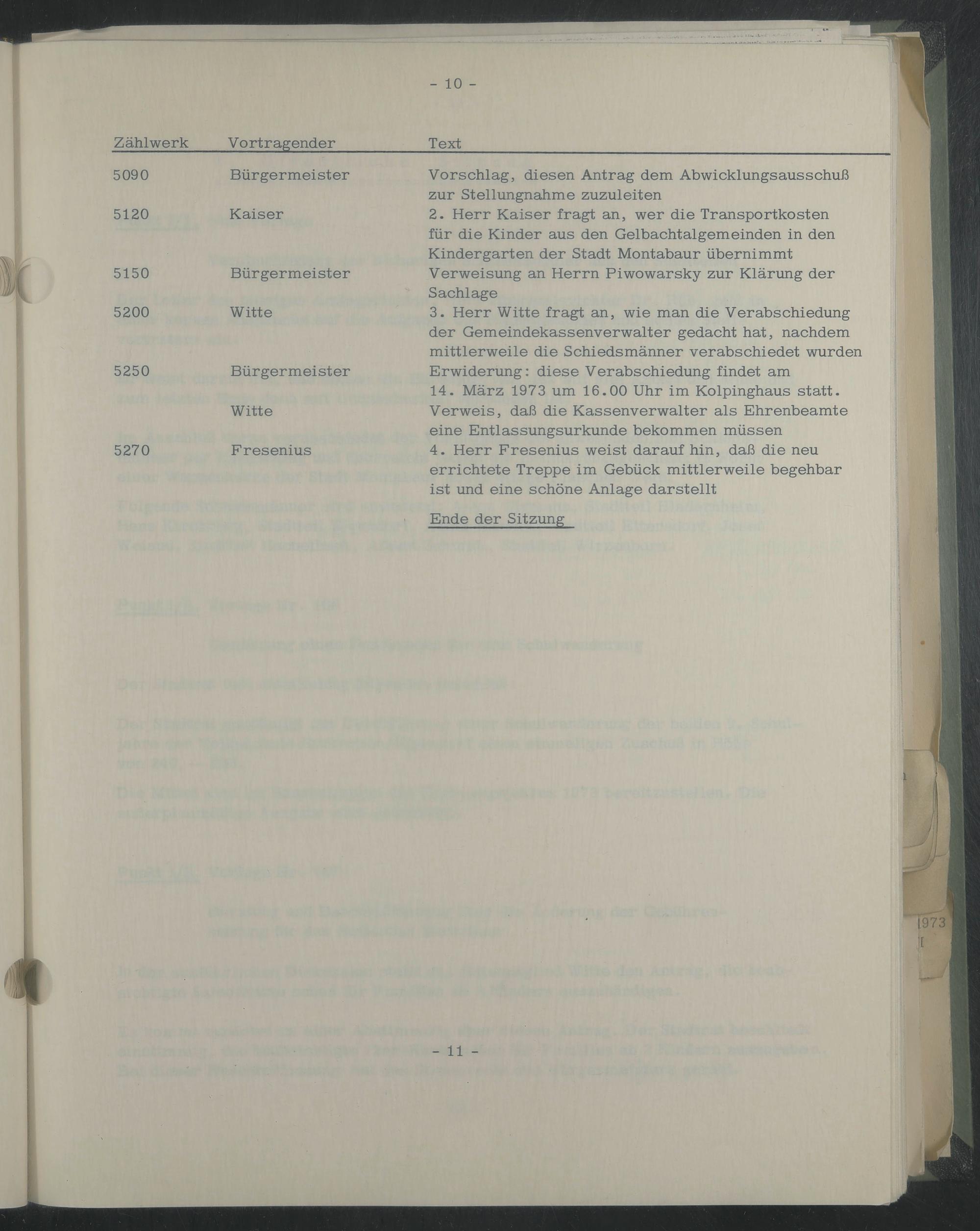 3. Herr Witte fragt an, wie man die Verabschiedung der Gemeindekassenverwalter gedacht hat, nachdem mittlerweile die Schiedsmänner verabschiedet wurden