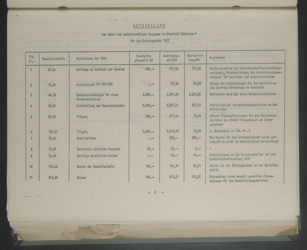 der über- und auBerplanmäBigen Ausgaben Im Stadtteil Ettersdorf für das Rechnungsjahr 1972