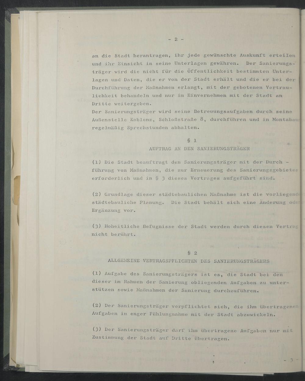 Der Sanierungsträger wird seine Betreuungsaufgaben durch seine Außenstelle Koblenz, Schloßstraße 8, durchführen und in Montabaur regelmäßig Sprechstunden abhalten.