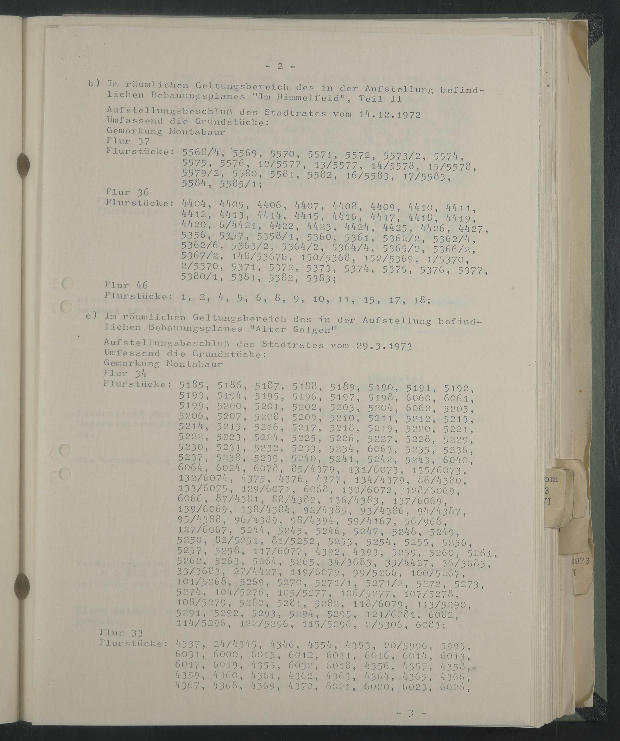 Aufstellungsbeschluß des Stadtrates vom 29*3*1973 Umfassend die Grundstücke: