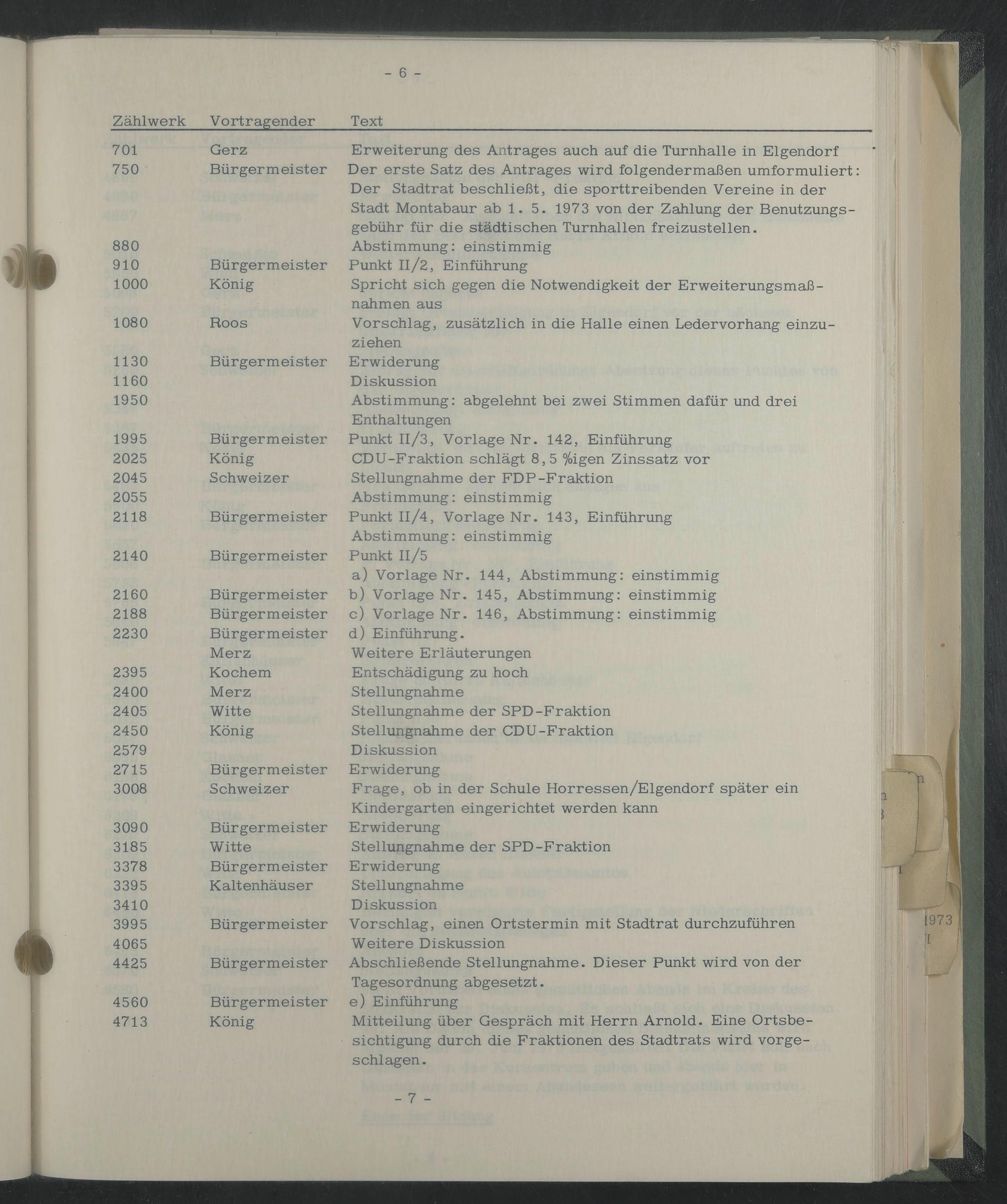 Erweiterung des Antrages auch auf die Turnhalle in Eigendorf Der erste Satz des Antrages wird folgendermaßen umformuliert: Der Stadtrat beschließt, die sporttreibenden Vereine in der Stadt Montabaur ab 1. 5. 1973 von der Zahlung der Benutzungsgebühr für die städtischen Turnhallen freizustellen. Abstimmung: einstimmig Punkt II/2, Einführung