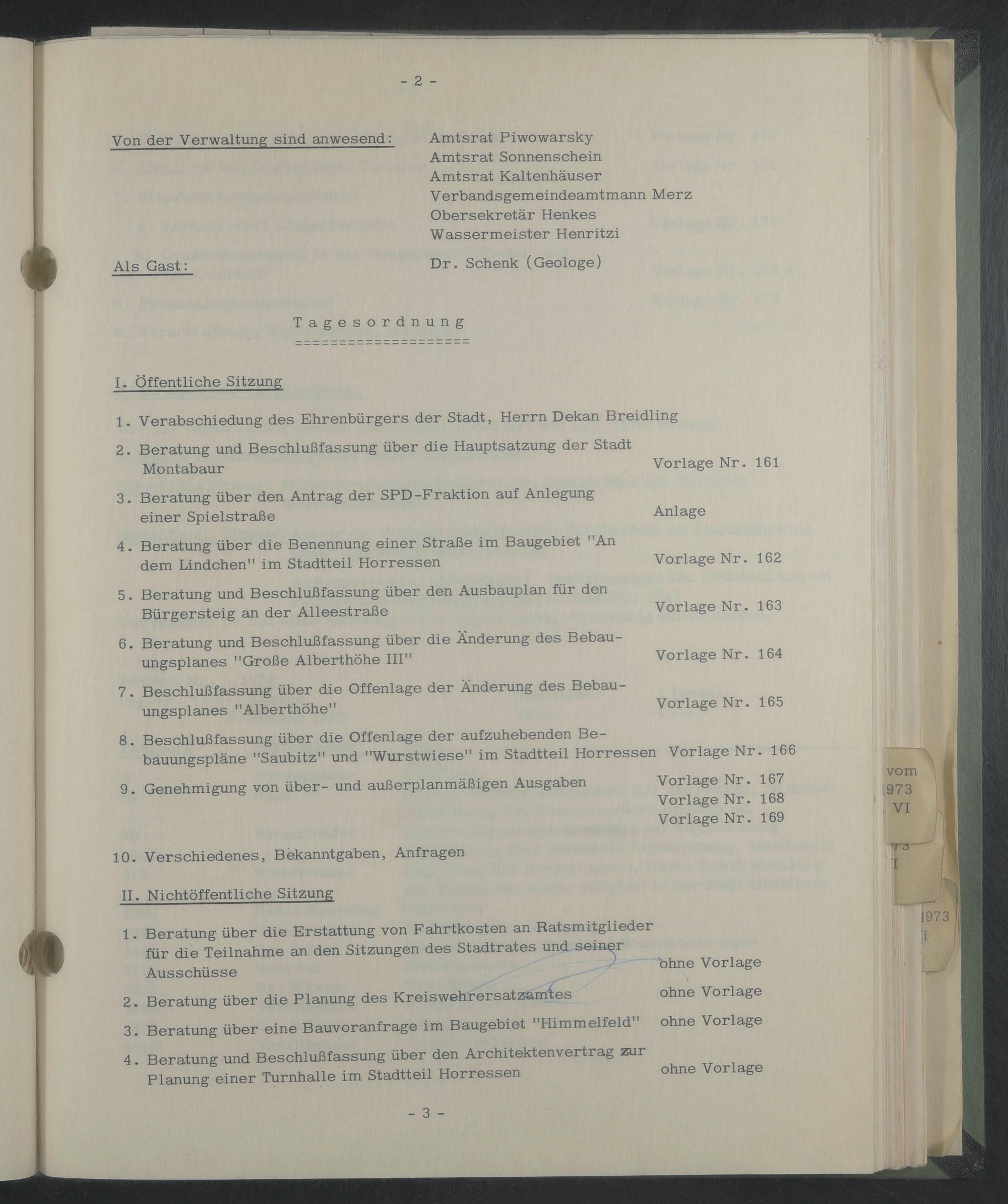 Vorlage Nr. 167 Vorlage Nr. 168 Vorlage Nr. 169