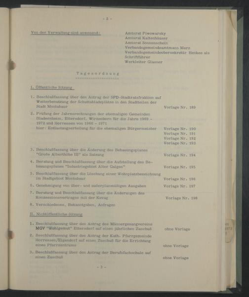 2. Prüfung der Jahresrechnungen der ehemaligen Gemeinden Bladernheim, Ettersdorf, Wirzenborn für die Jahre 1969 - 1972 und Horressen von 1966 - 1971