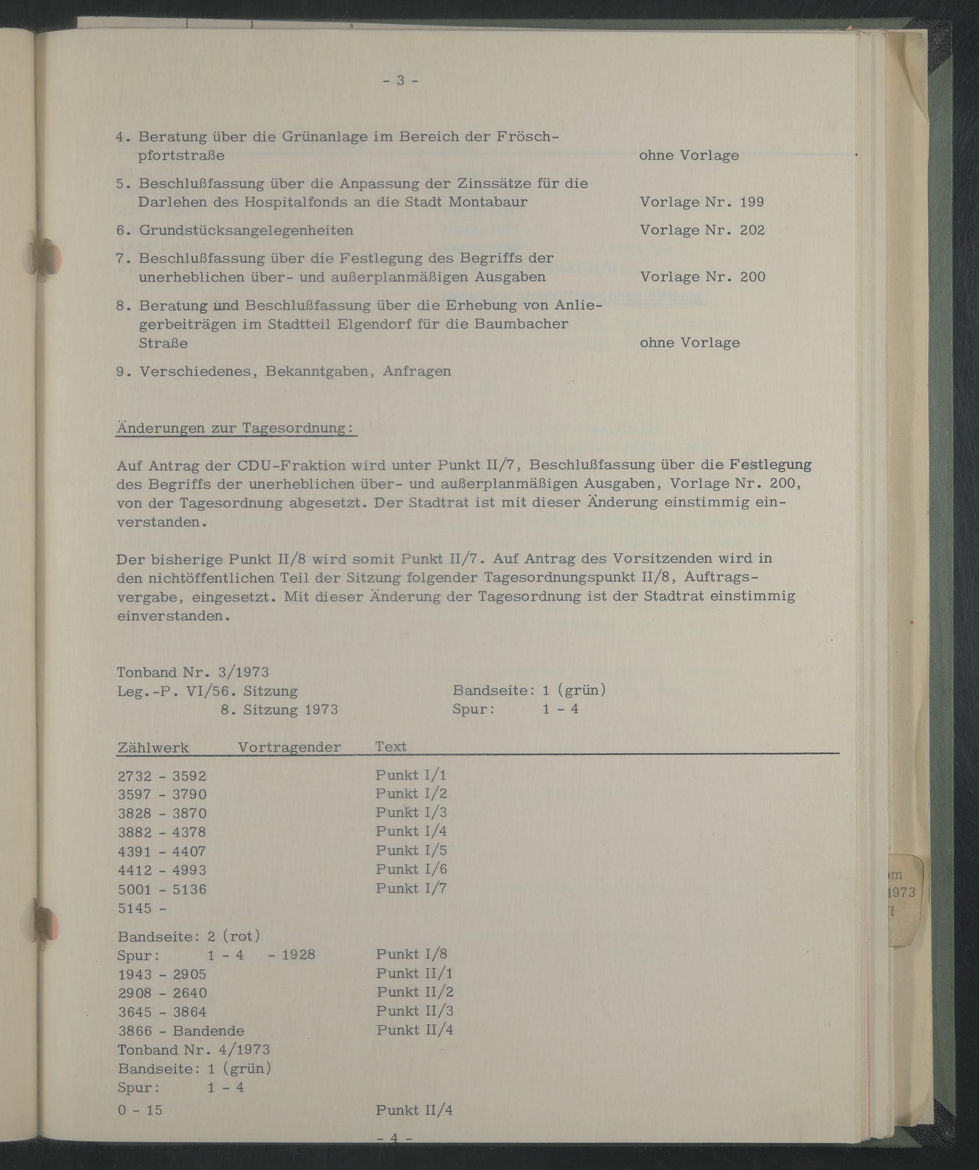Tonband Nr. 4/1973 Bandseite: 1 (grün) Spur: 1 -4
