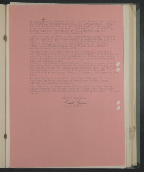 Soweit in einzelnen Stadtteilen keine Ablagerungsmöglichkeif bestände, müsste nach unserer Meinung überlegt werden, ob an geeigneter Stelle ein Sammelplatz angelegt wird, von dem in Zeitabständen, wenn sich der Transport mit einem LK77 wirtschaftlich vertreten lässt, zur Deponie abgefahren werden kann.