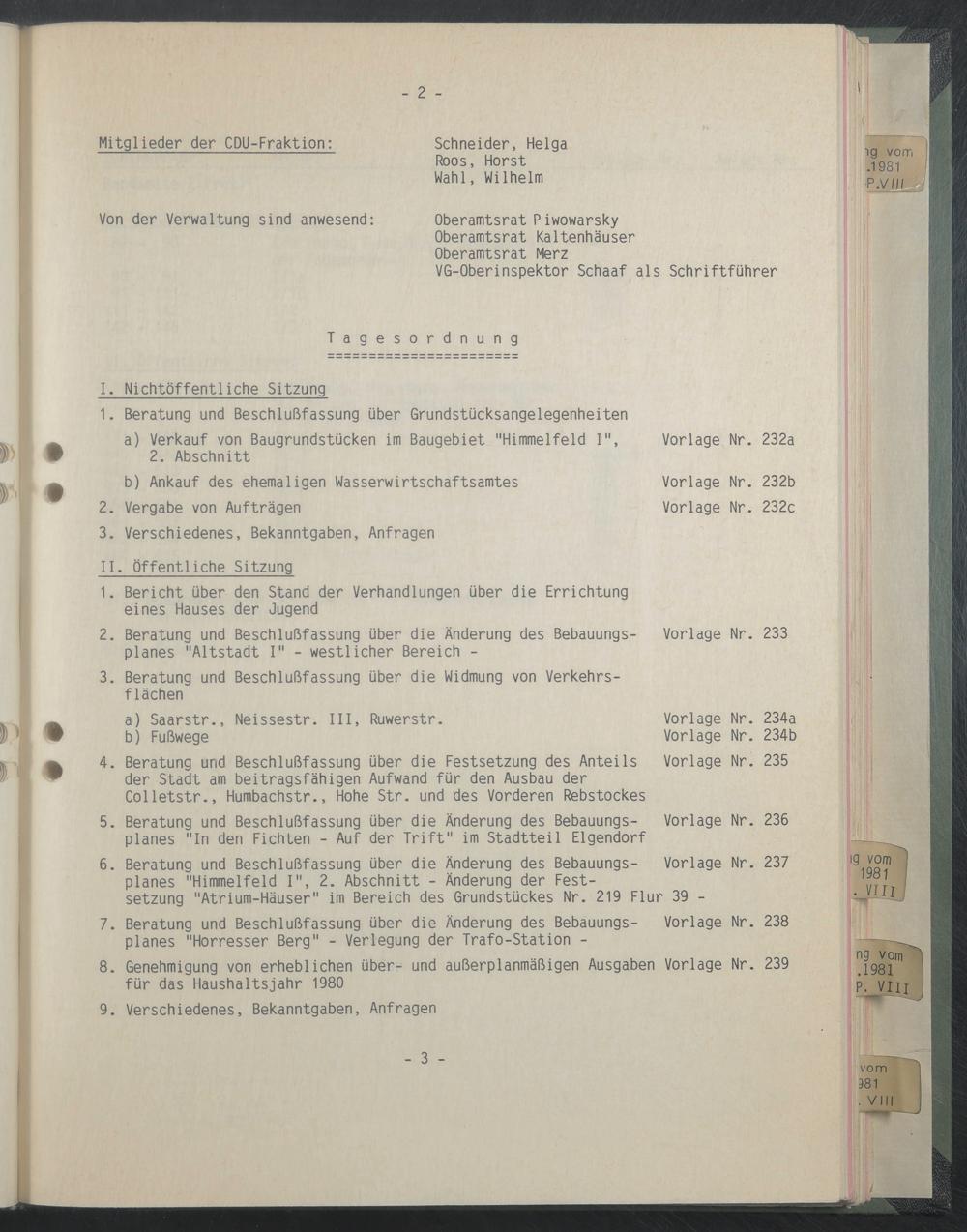 Von der Verwaltung sind anwesend: Oberamtsrat Piwowarsky