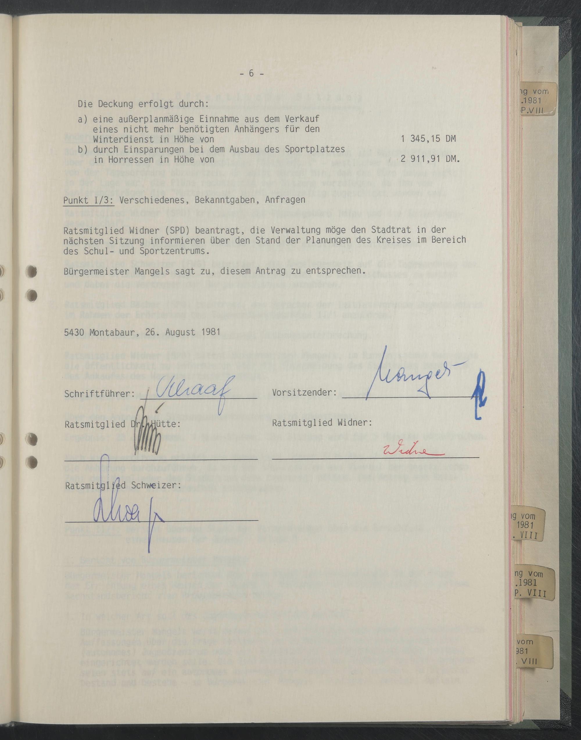^ Bürgermeister Mangels sagt zu, diesem Antrag zu entsprechen.