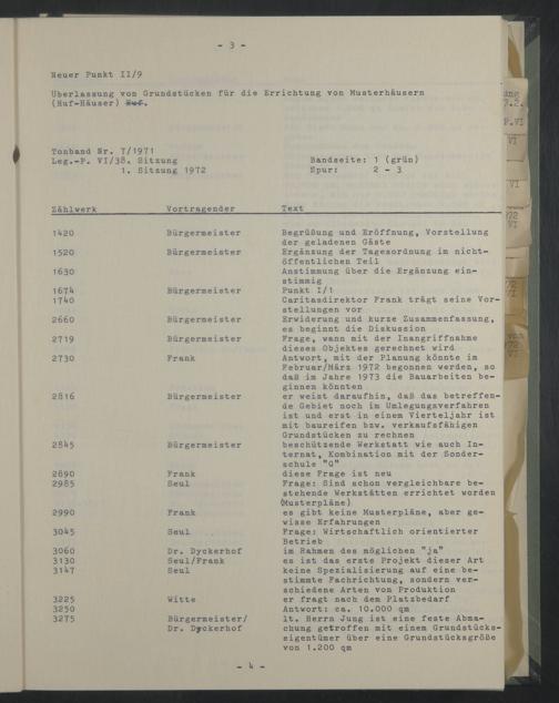 Tonband Nr. 7/1971 Leg.-P. VI/38. Sitzung