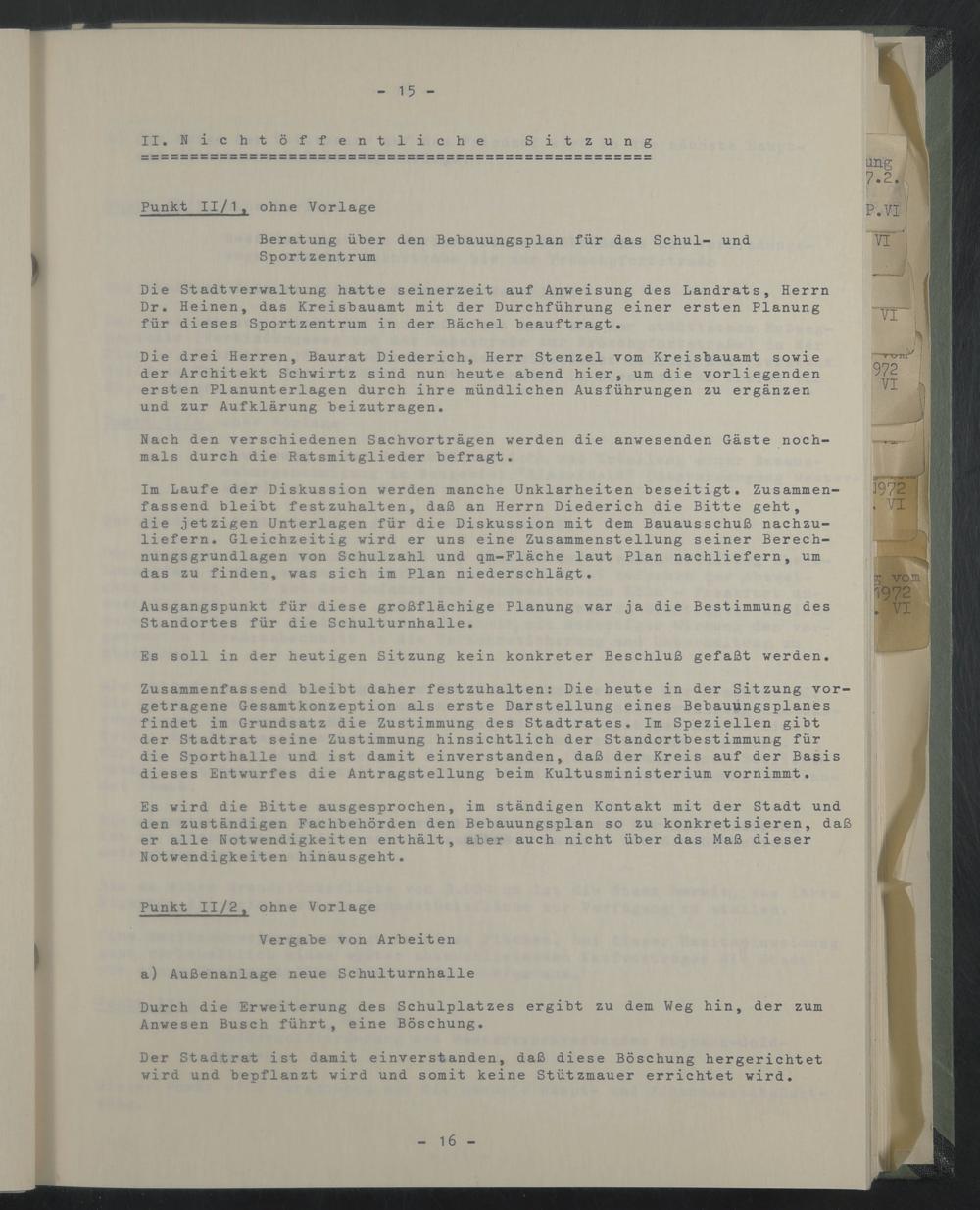 Beratung über den Bebauungsplan für das Schul- und Sport Zentrum