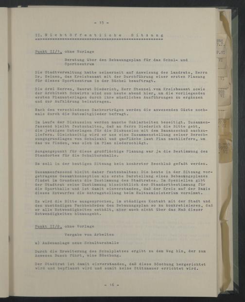 Die Stadtverwaltung hatte seinerzeit auf Anweisung des Landrats, Herrn Dr. Heinen, das Kreisbauamt mit der Durchführung einer ersten Planung für dieses Sportzentrum in der Bächel beauftragt.