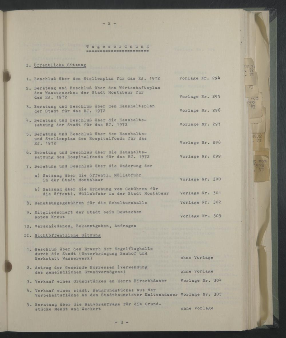 3. Beratung und Beschluß über den Haushaltsplan der Stadt für das RJ. 1972