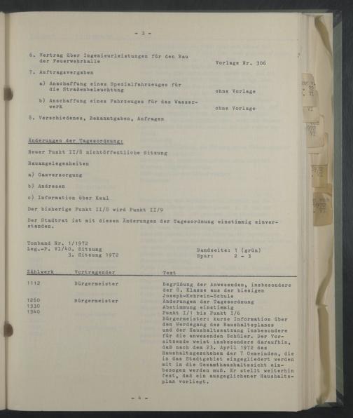 Tonband Nr. 1/1972 Leg.-P. VI/40. Sitzung