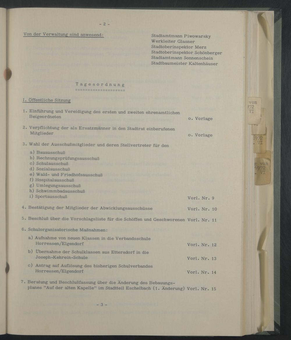7. Beratung und Beschlußfassung über die Änderung des Bebauungsplanes "Auf der alten Kapelle" im Stadtteil Eschelbach (l. Änderung) Vorl. Nr. 15