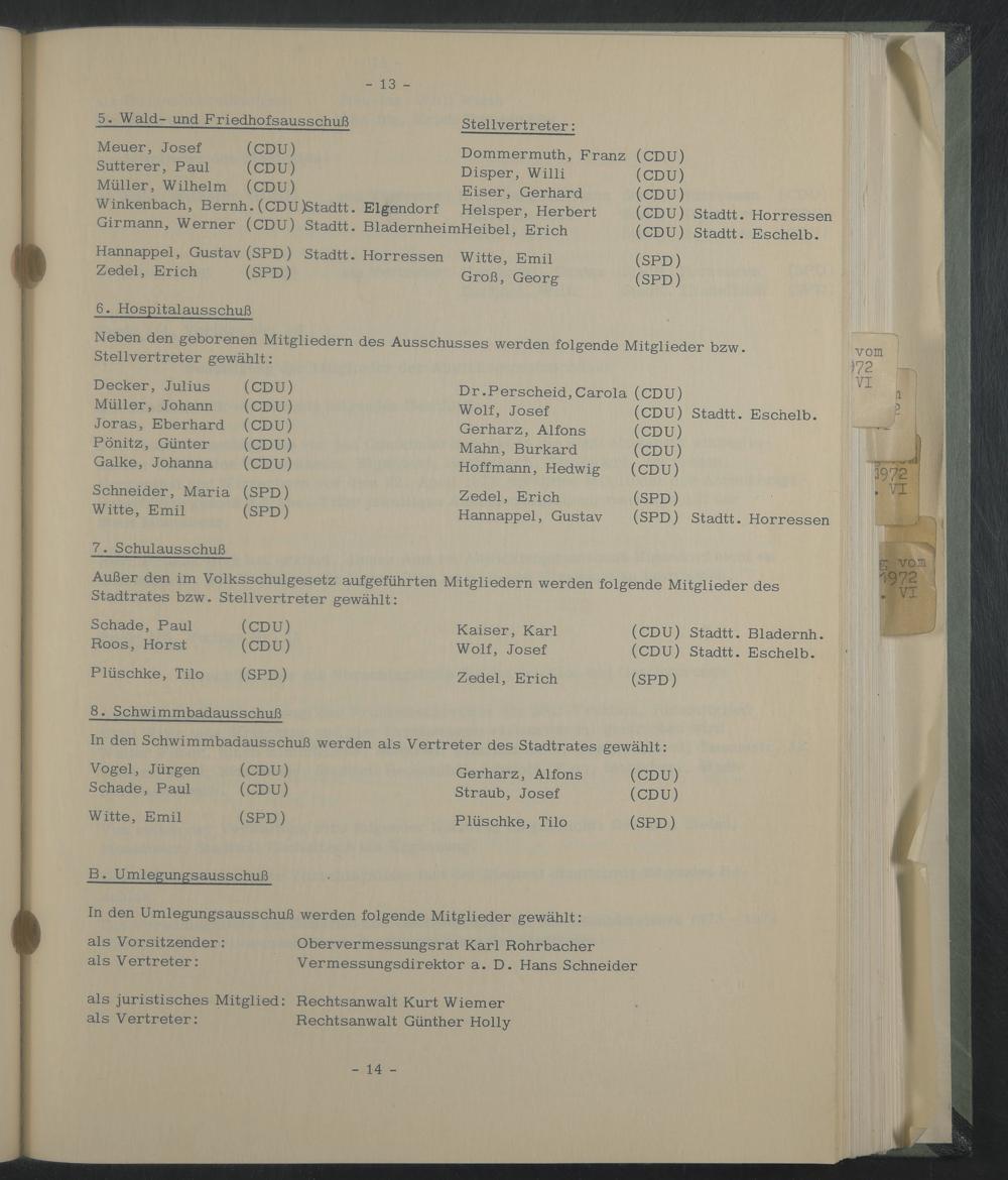 Hannappel, Gustav (SPD) Stadtt. Horressen Witte, Emil Zedel, Erich (SPD) Groß, Georg