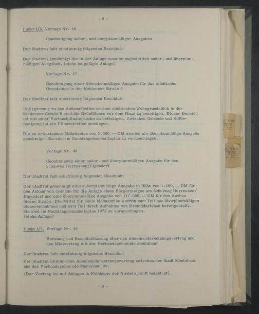 Sie sind im Nachtragshaushaltsplan 1972 zu veranschlagen.