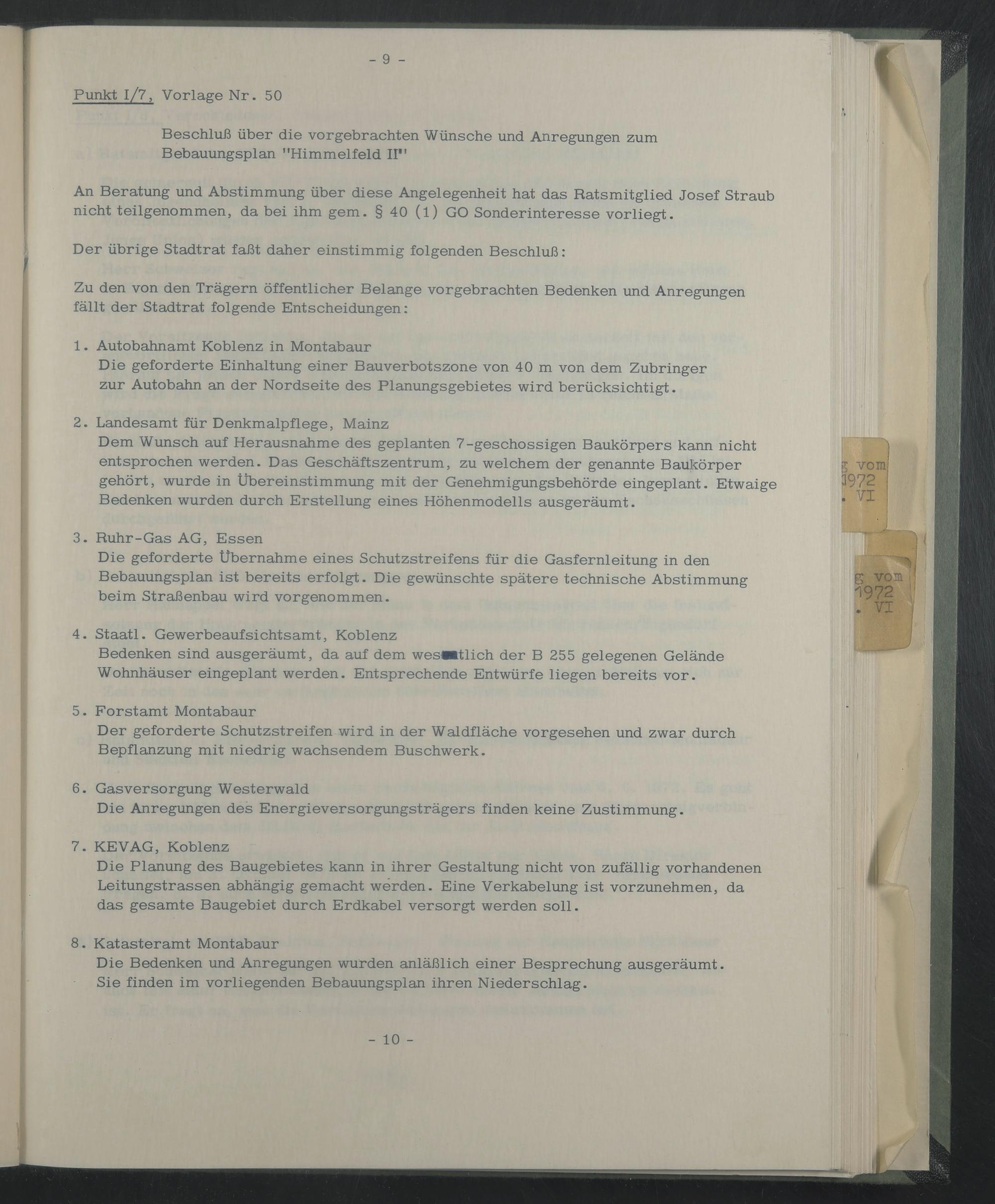 Die Bedenken und Anregungen wurden anläßlich einer Besprechung ausgeräumt.