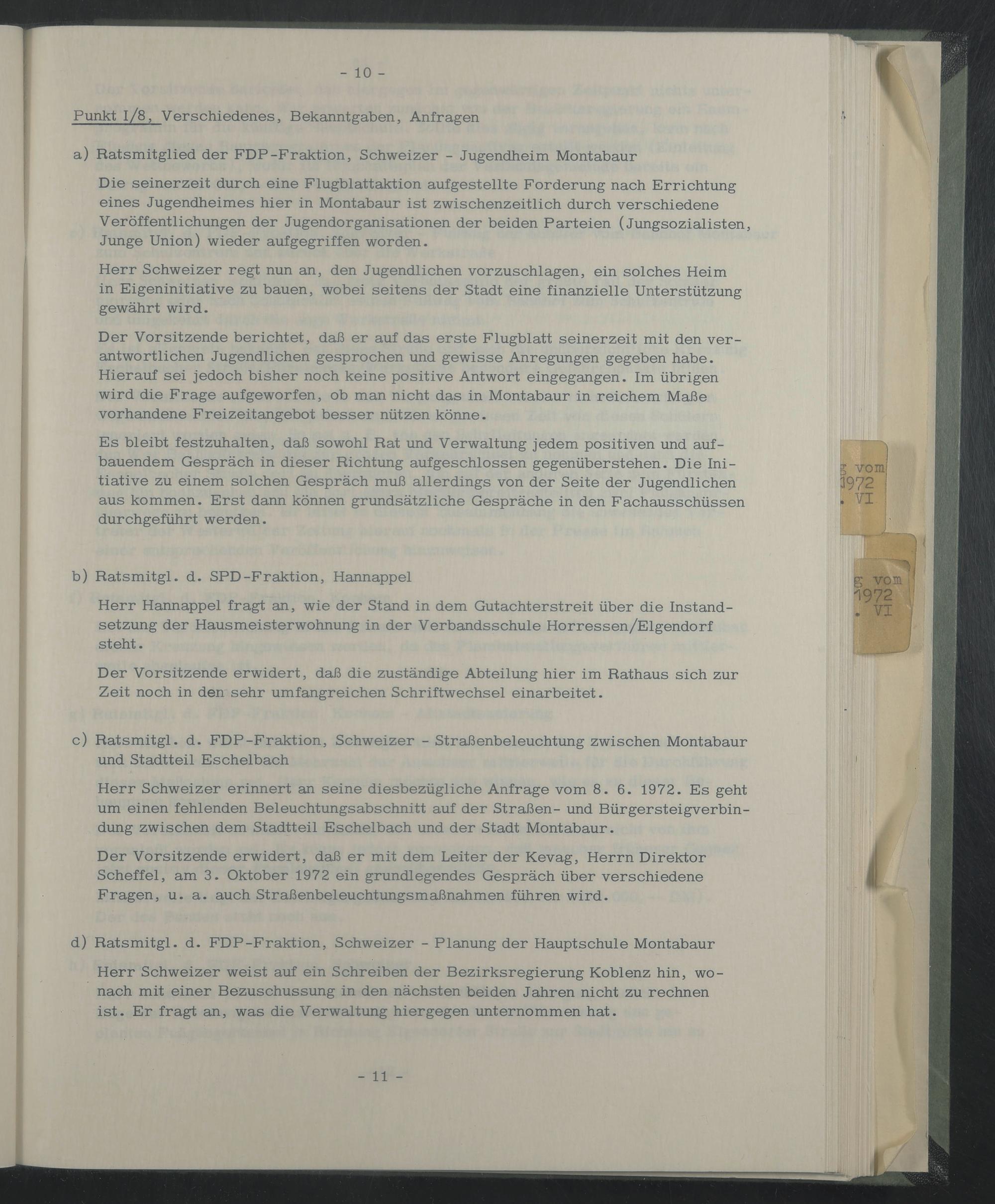 a) Ratsmitglied der FDP-Fraktion, Schweizer - Jugendheim Montabaur