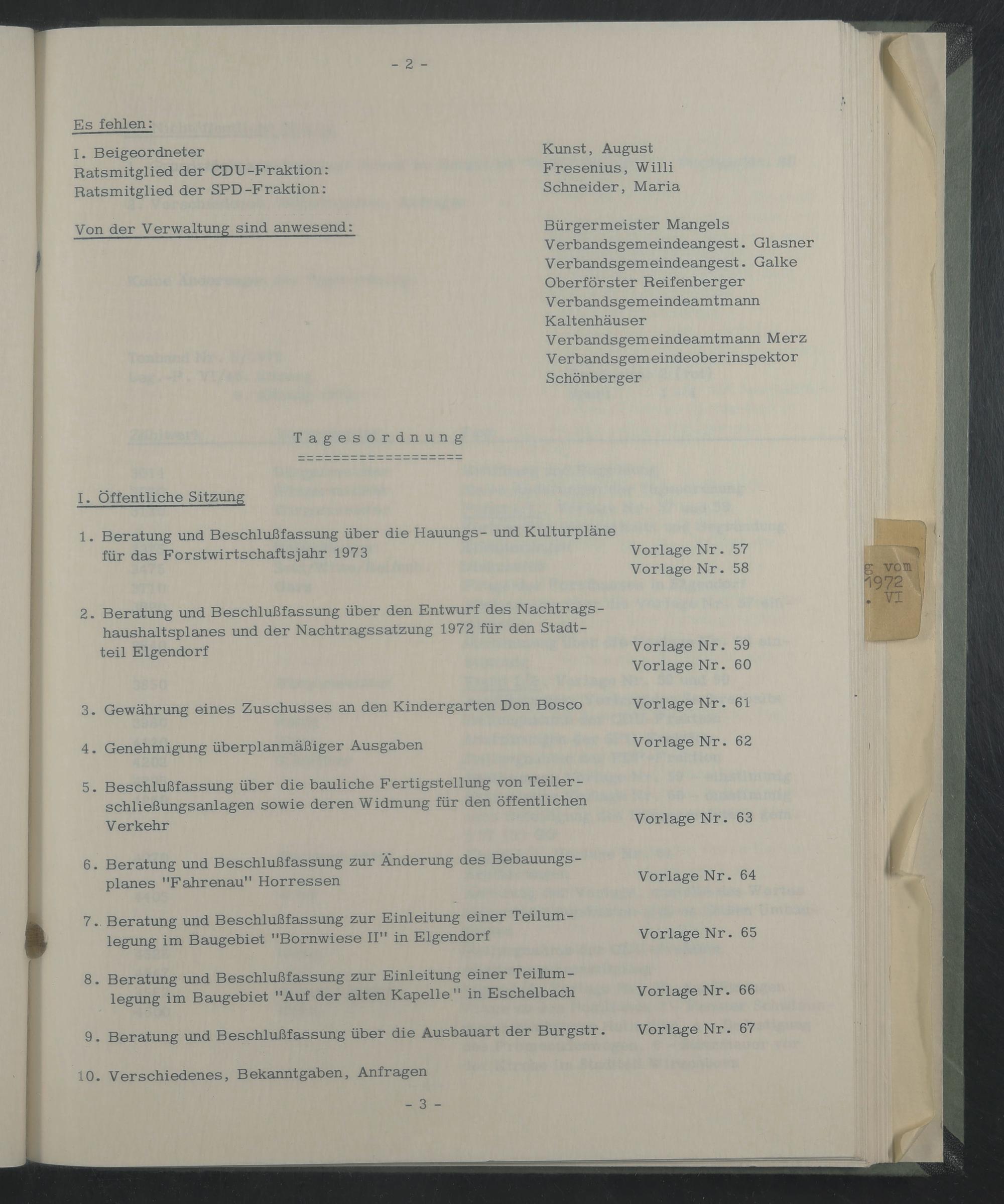 haushaltsplanes und der Nachtragssatzung 1972 für den Stadtteil Eigendorf Vorlage Nr. 59