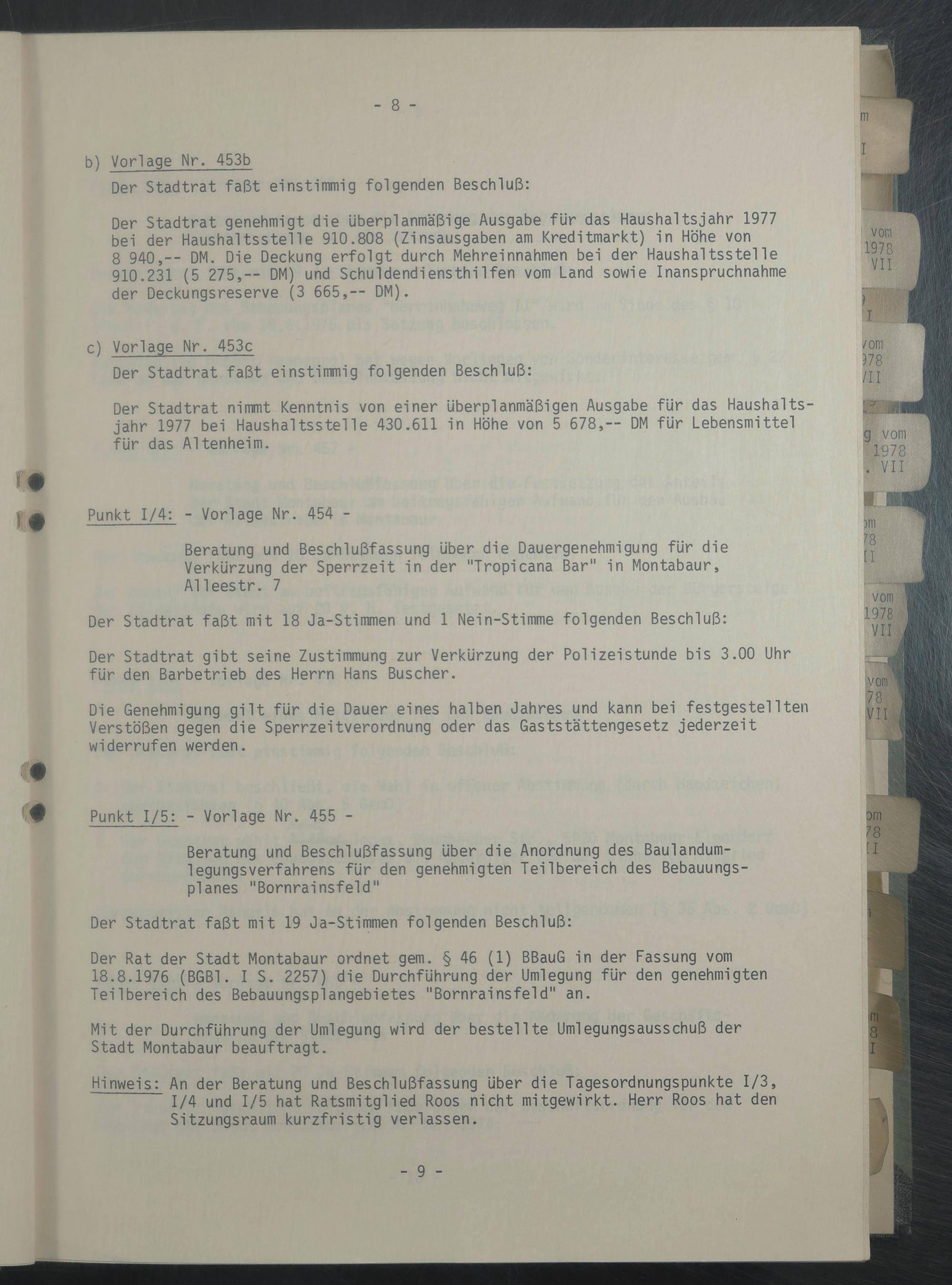 Hinweis: An der Beratung und Beschlußfassung über die Tagesordnungspunkte 1/3, 1/4 und 1/5 hat Ratsmitglied Roos nicht mitgewirkt. Herr Roos hat den Sitzungsraum kurzfristig verlassen.