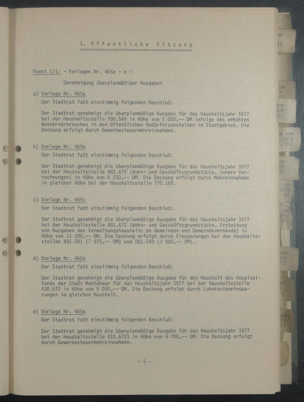 Punkt 1/1: - Vorlagen Nr. 465a - e -