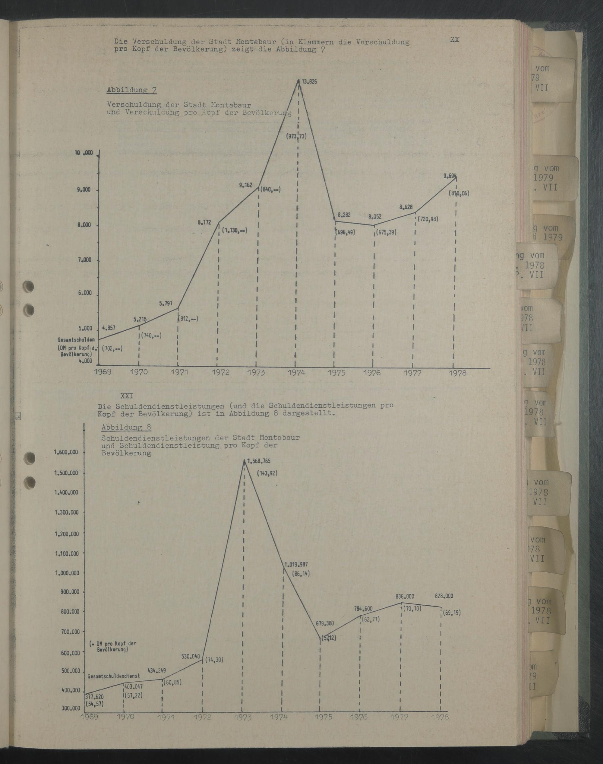 Die Verschuldung der Stadt Montabaur (in Klammern die Verschuldung pro Kopf der Bevölkerung) zeigt die Abbildung 7