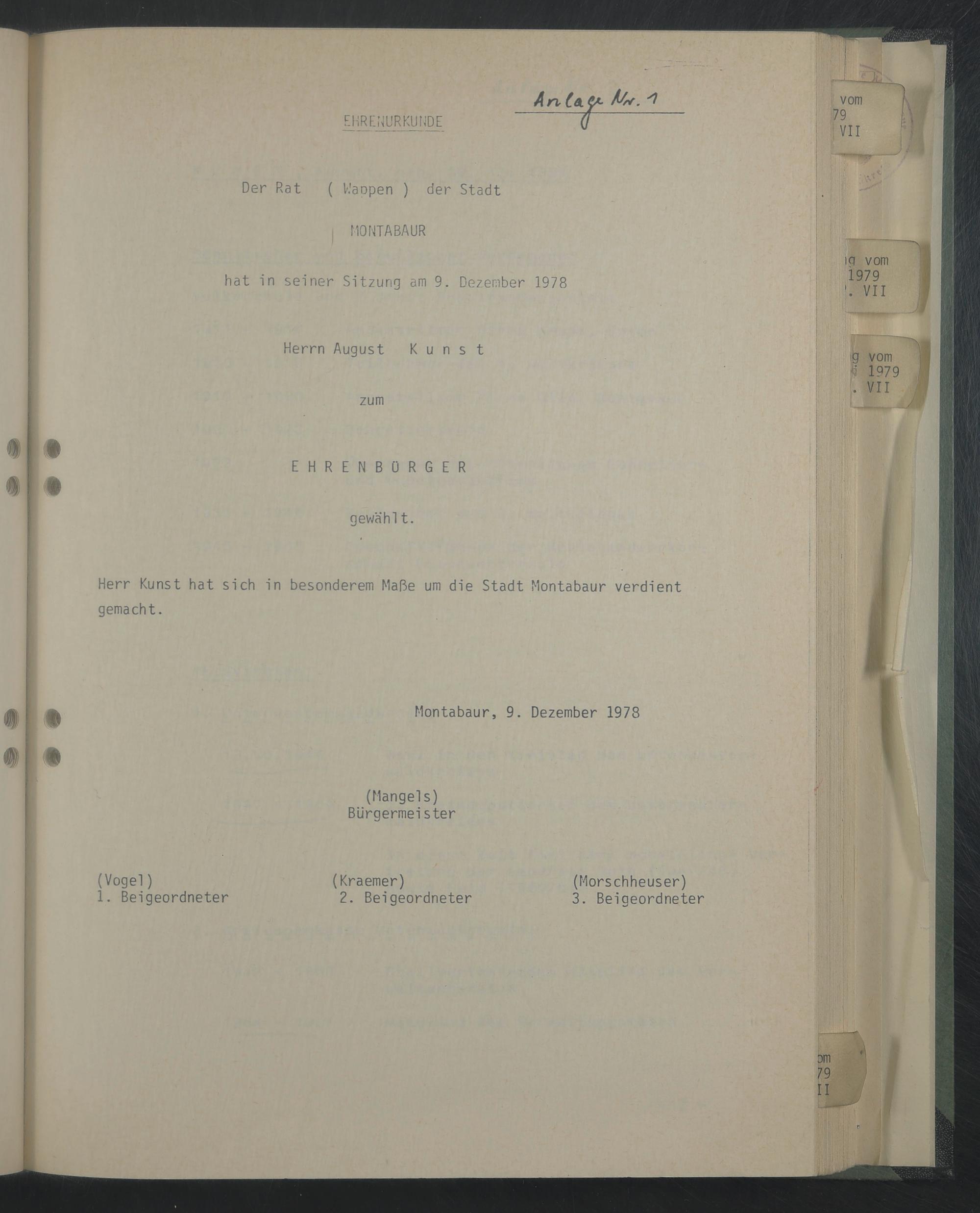 Herr Kunst hat sich in besonderem Maße um die Stadt Montabaur verdient gemacht.