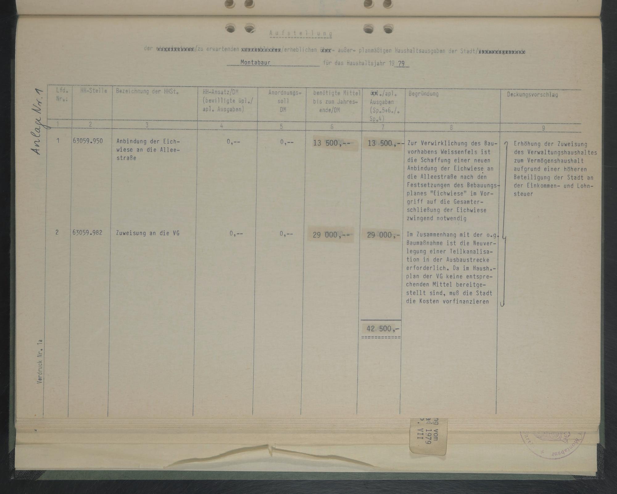 Montabaur _ tür das Haushaltsjahr 19 79_