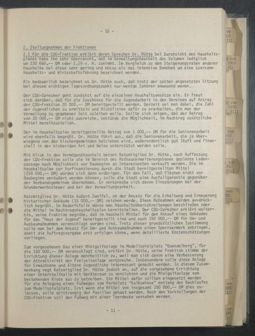Als bedauerlich bezeichnet es Dr. Hütte auch, daß trotz der später angesetzten Sitzung bei diesem wichtigen Tagesordnungspunkt nur wenige Zuhörer anwesend waren.
