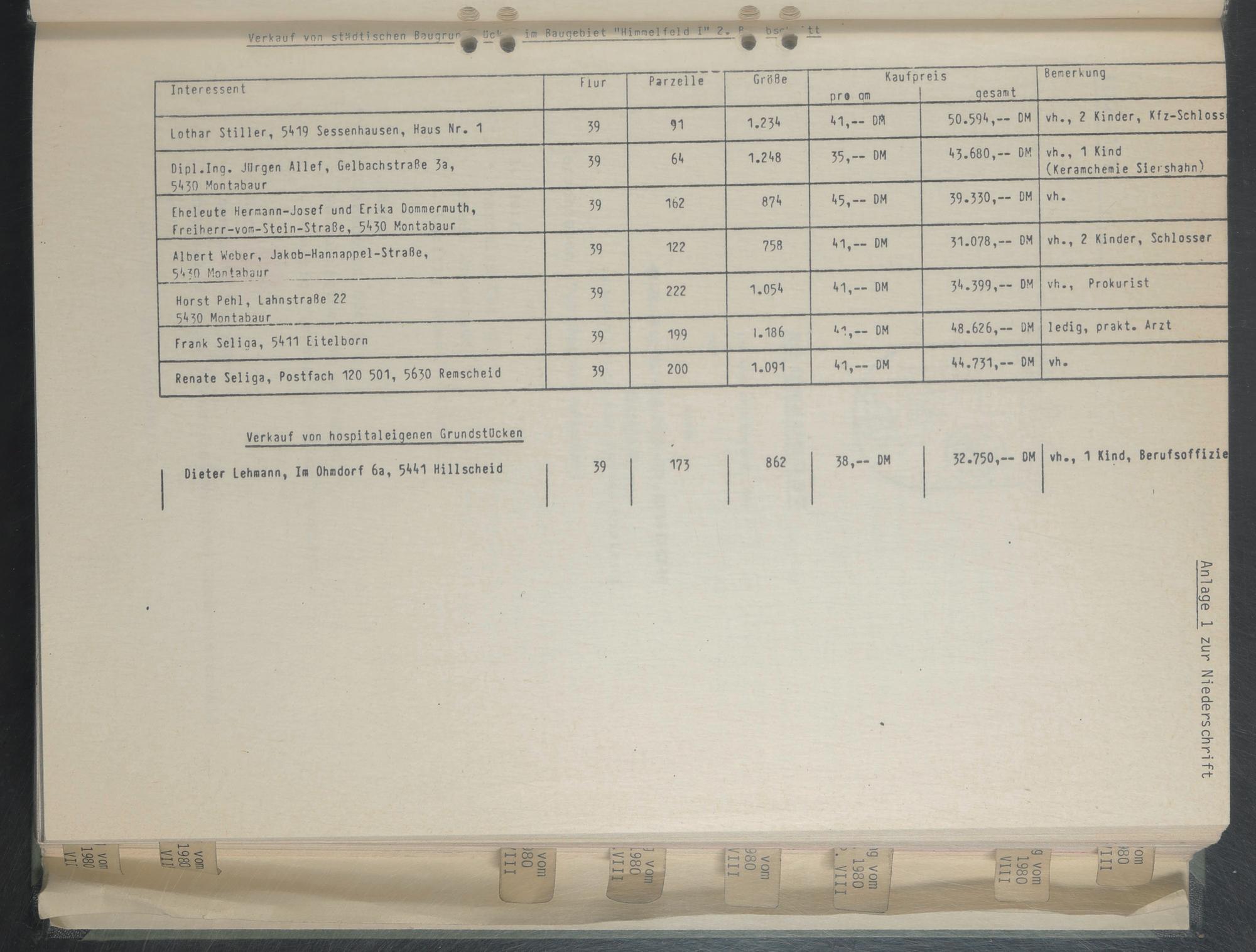 Verkauf von städtischen Bäu^ru n^ hc im Baö^ebiet "Himmel feid I" 2n ^ bs<^ _tt