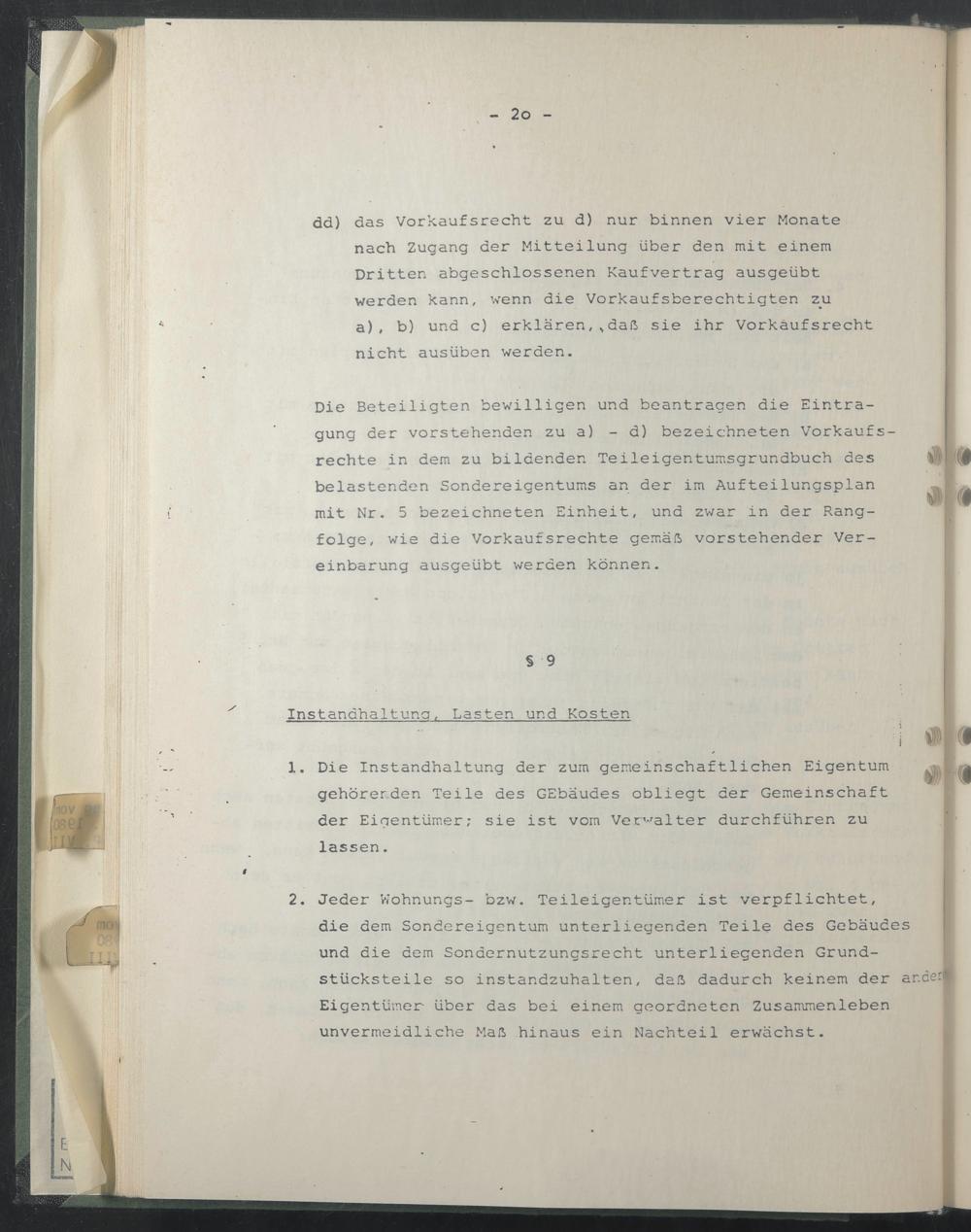 Die Beteiligten bewilligen und beantragen die Eintragung der vorstehenden zu a) - d) bezeichneten Vorkaufsrechte in dem zu bildenden Teileigentumsgrundbuch des belastenden Sondereigentums an der im Aufteilungsplan mit Nr. 5 bezeichneten Einheit, und zwar in der Rangfolge, wie die Vorkaufsrechte gemäß vorstehender Vereinbarung ausgeübt werden können.