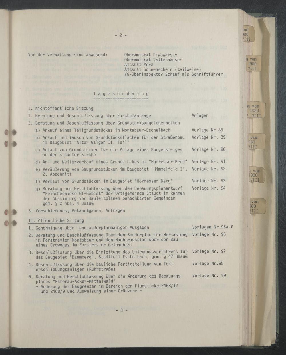2. Beratung und Beschlußfassung über Grundstücksangelegenheiten