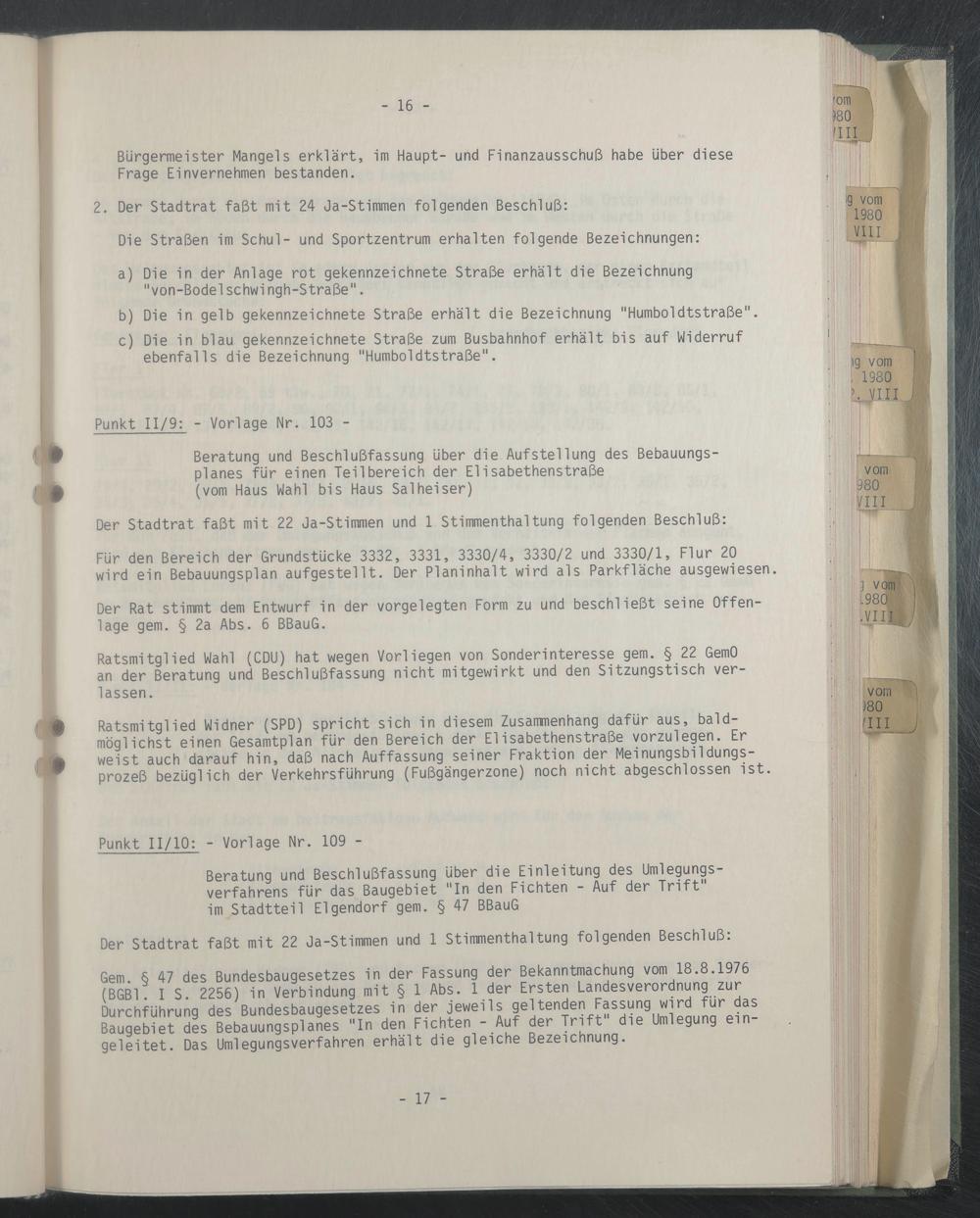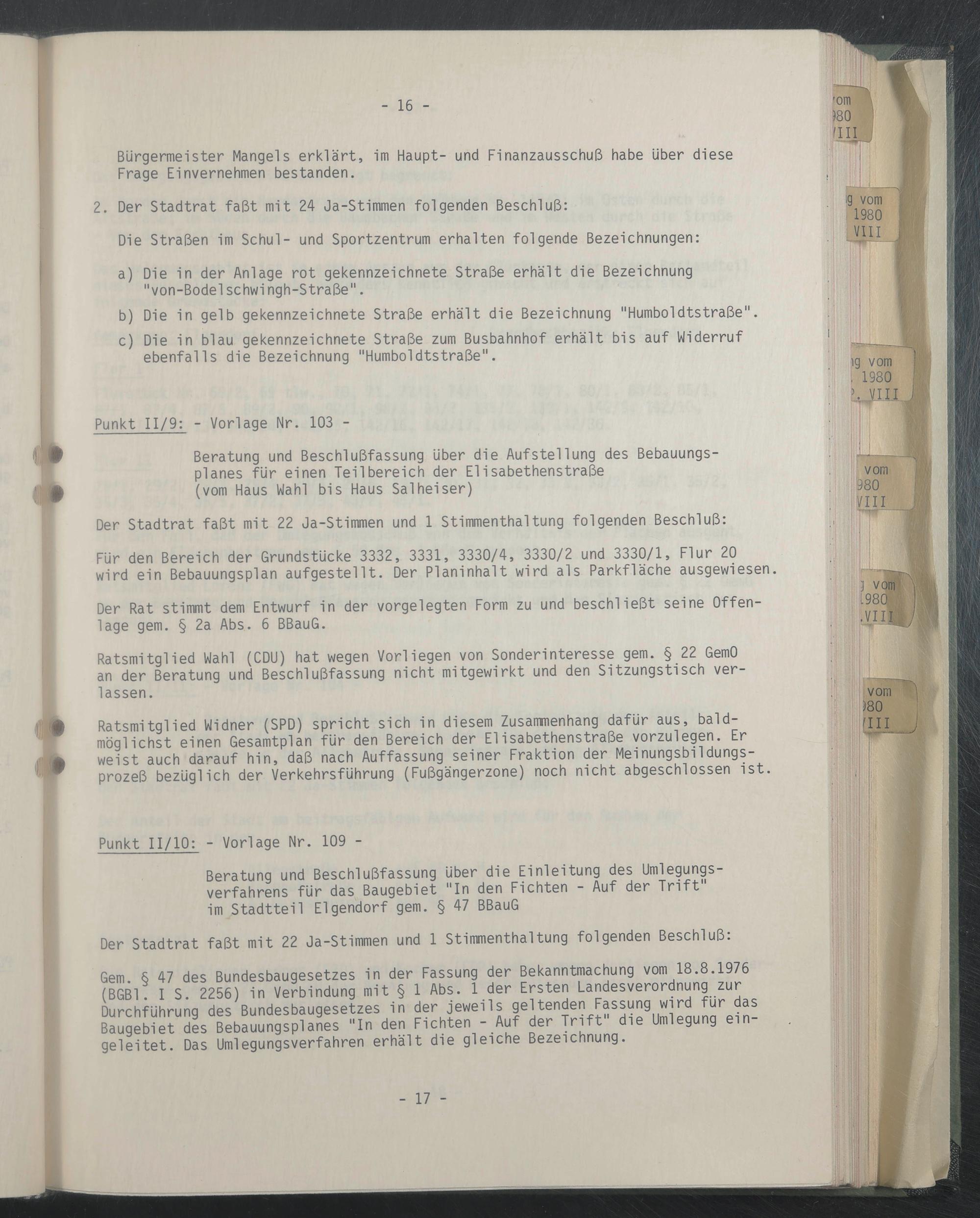 Ratsmitglied Mahl (CDU) hat wegen Vorliegen von Sonderinteresse gern. § 22 GemO an der Beratung und Beschlußfassung nicht mitgewirkt und den Sitzungstisch verlassen.