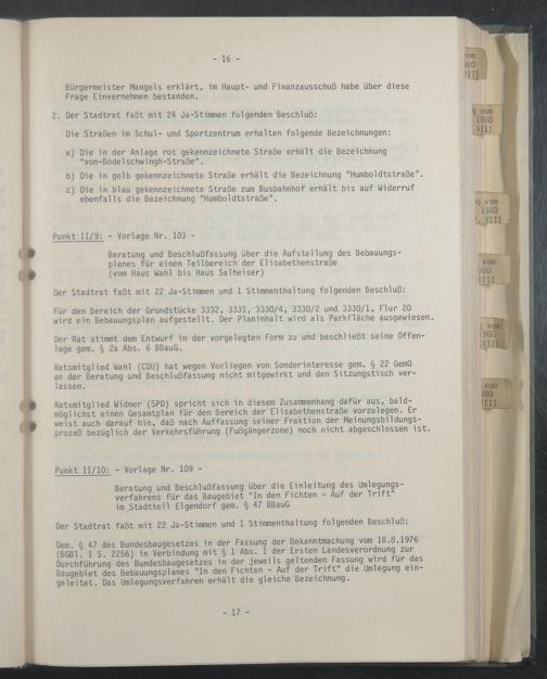 b) Die in gelb gekennzeichnete Straße erhält die Bezeichnung "Humboldtstraße"