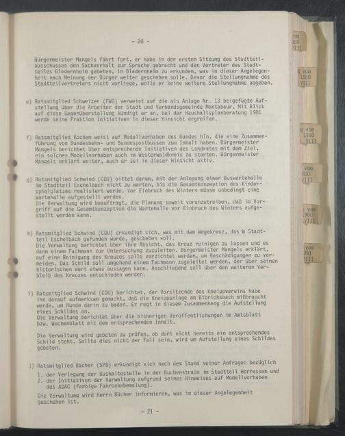 j) Ratsmitglied Bächer (SPD) erkundigt sich nach dem Stand seiner Anfragen bezüglich