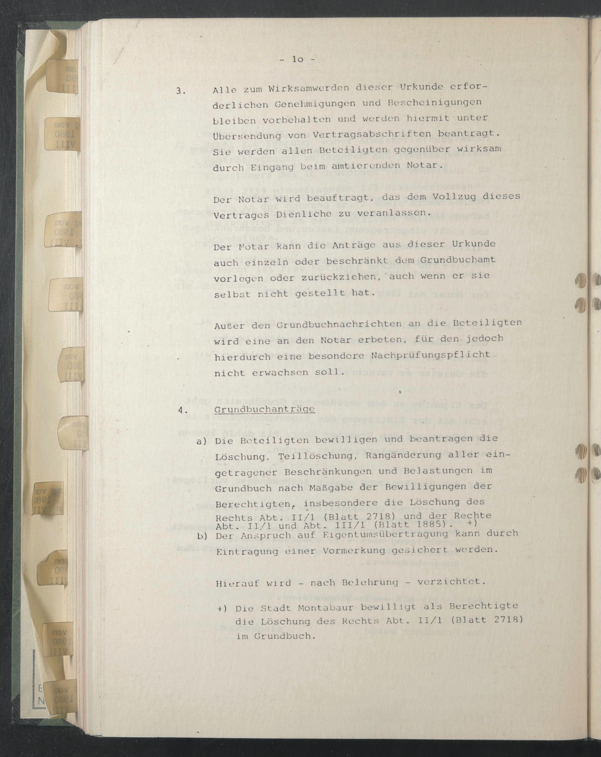i) Die Stadt Montabaur bewilligt als Berechtigte die Löschung des Rechts Abt. 11/1 (Blatt 2718) im Grundbuch.