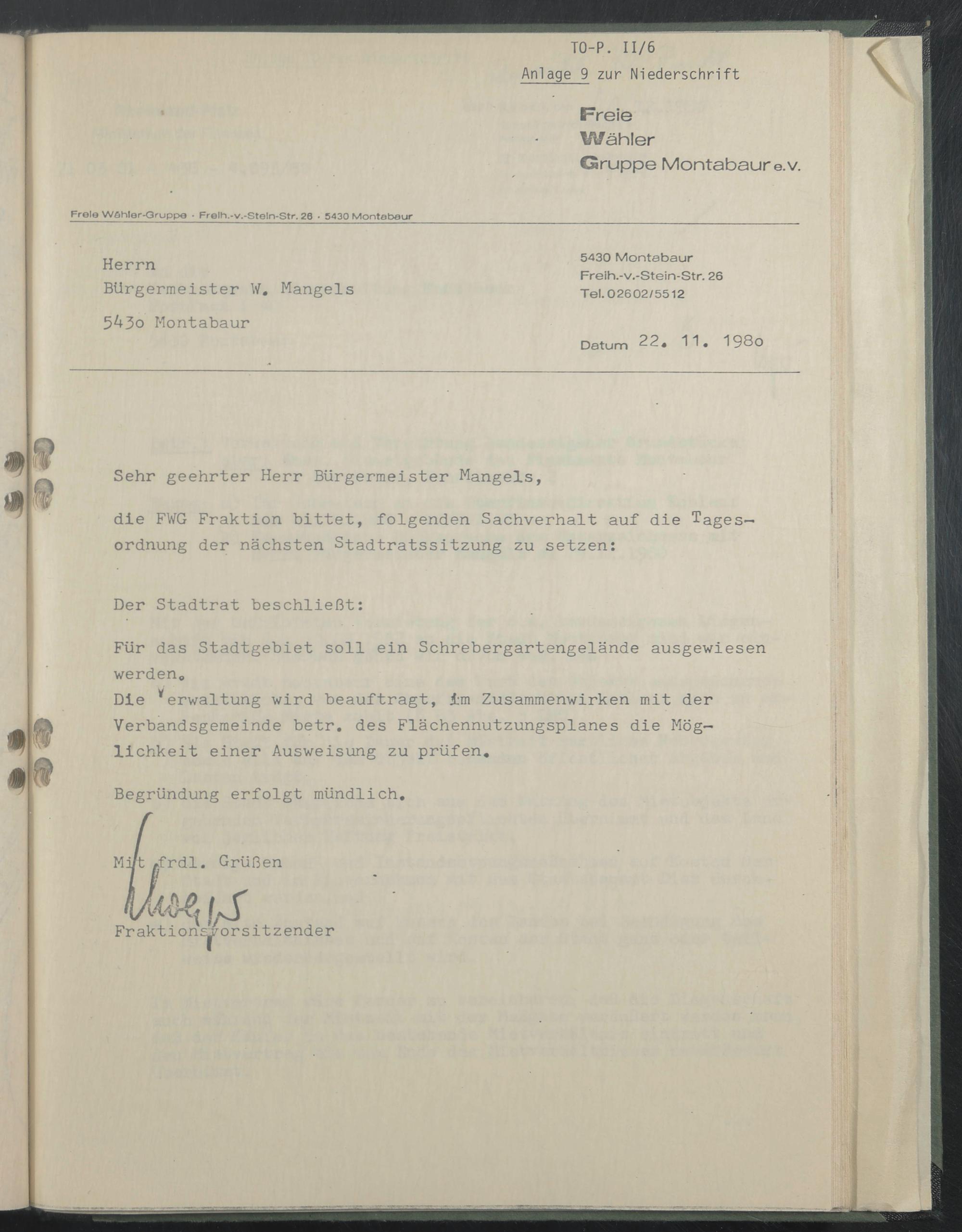 Freie Wßhter-Gruppe . Fre!h.-v.-Stetn-Str. 29 - 5430 Montabaur