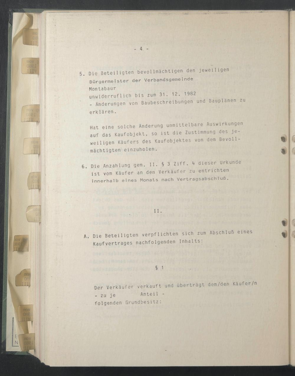 6. Die Anzahlung gern. II. § 3 Ziff. 4 dieser Urkunde ist vom Käufer an den Verkäufer zu entrichten innerhalb eines Monats nach Vertragsabschluß.