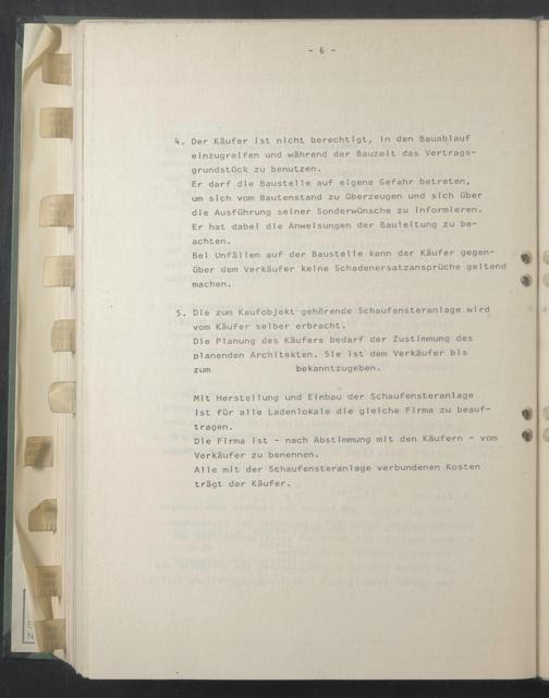 Der Käufer ist nicht berechtigt, in den Bauablauf einzugreifen und während der Bauzeit das Vertragsgrundstück zu benutzen.
