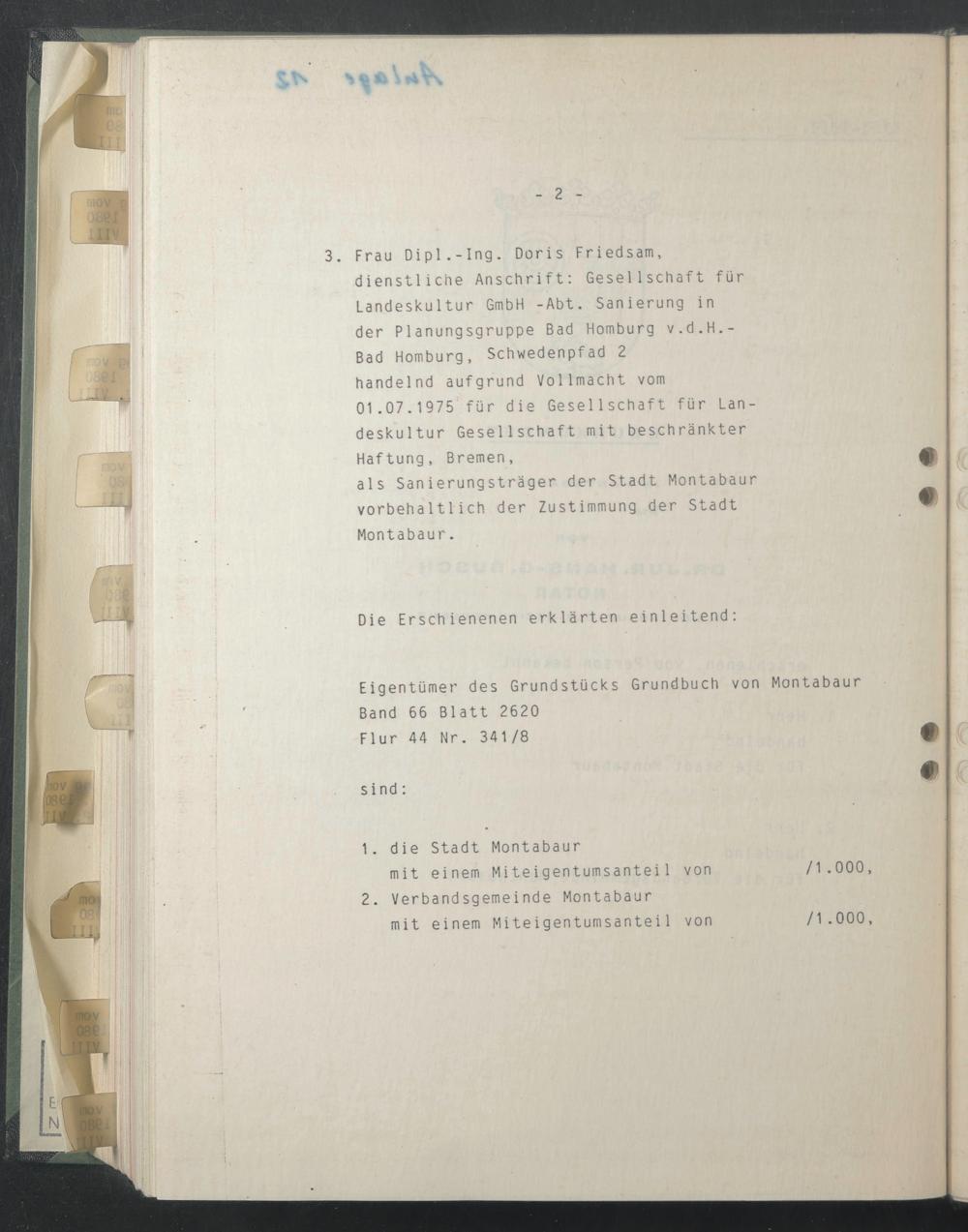 dienstliche Anschrift: Gesellschaft für Landeskultur GmbH -Abt. Sanierung in der Planungsgruppe Bad Homburg v.d.H.- Bad Homburg, Schwedenpfad 2 handelnd aufgrund Vollmacht vom 01.07.1975 für die Gesellschaft für Landeskultur Gesellschaft mit beschränkter Haftung, Bremen,